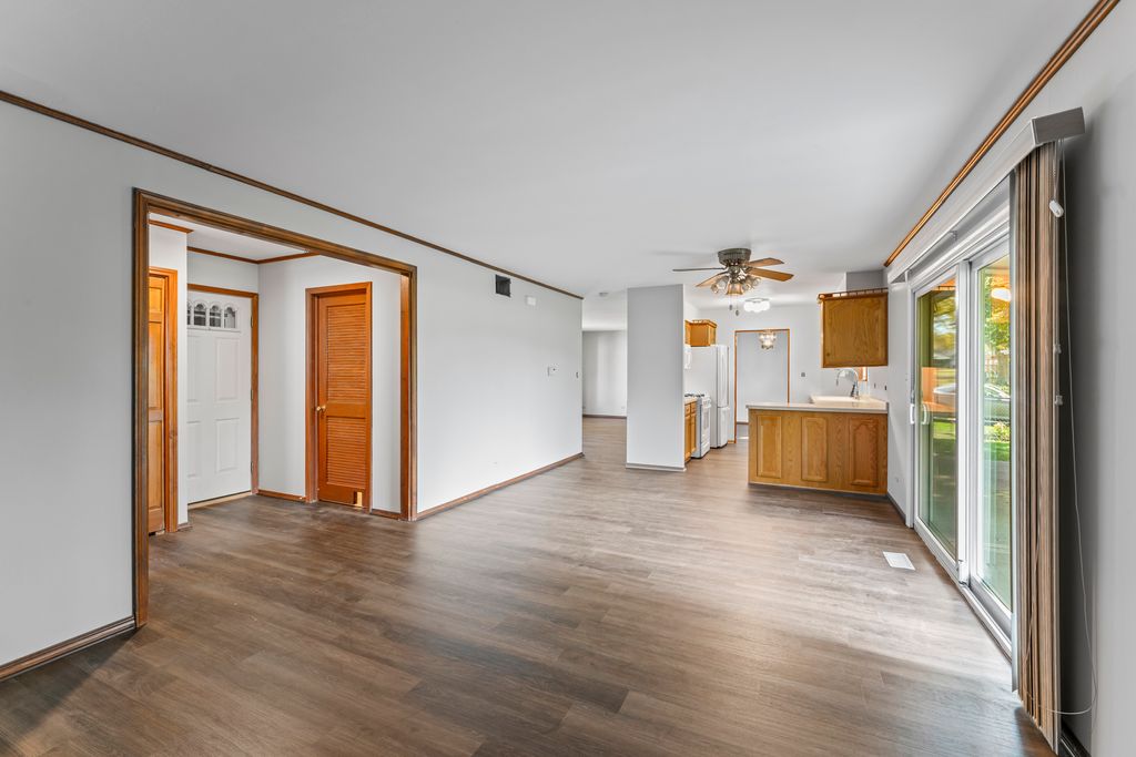BRAND NEW FLOORING AND PAINT THROUGHOUT!!! Welcome to your ideal home in the heart of Schaumburg! Located just two blocks from Dooley Elementary and within the sought-after Schaumburg High School District, this well-maintained 4-bedroom, 2.5-bathroom home offers comfort, space, and an unbeatable location. Set on a generous lot with a large fenced yard, this home backs directly to Duxbury Park and scenic park district nature areas, providing privacy and year-round beauty right outside your door. Inside, you'll find an inviting layout featuring a sun-filled living room with a large bay window, a formal dining room, and a family room with a gorgeous fireplace-perfect for cozy nights or entertaining guests. The kitchen features Corian countertops, ample cabinet space, and an efficient layout. All four bedrooms are generously sized, including a primary suite with a walk-in shower. Two bedrooms showcase beautiful hardwood floors, and hardwood lies beneath the carpet in the other two, offering flexibility for your personal touch. Additional highlights include newer windows and doors (2020), a tankless water heater, two coat closets, and a separate laundry room. The attached two-car garage adds convenience. This home is clean, solid, and move-in ready, offering the perfect opportunity to update at your own pace. With its location, layout, and features, this is truly a home where you can grow and thrive for years to come.