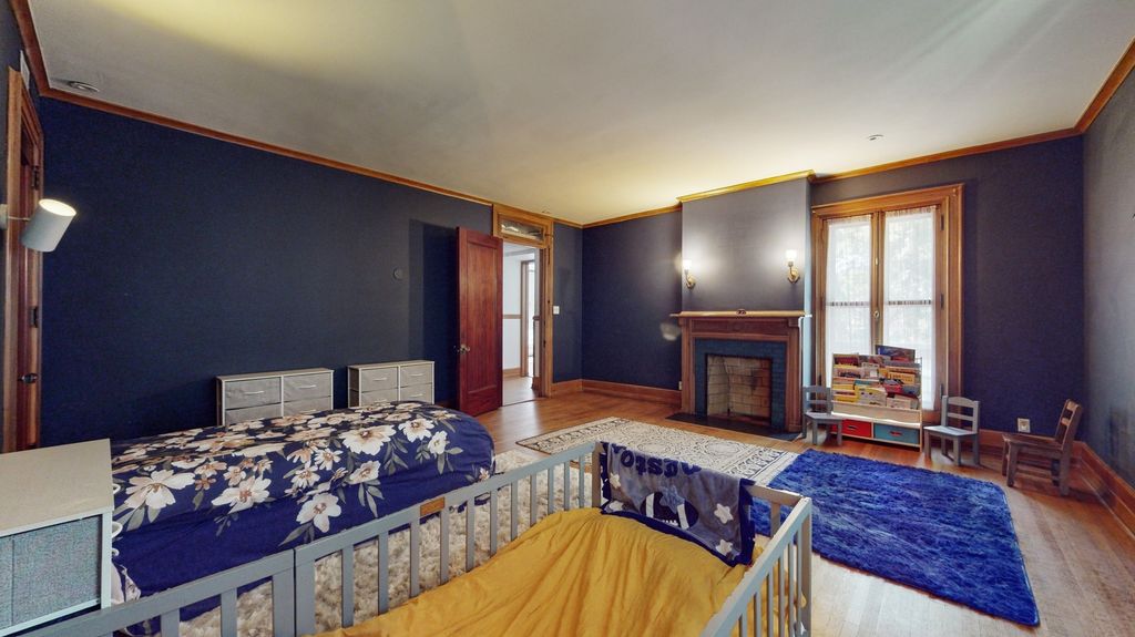 Stunning and impressive Hyde Park house and coach house designed by architect, James Gamble Rogers, is a short walking distance to The University of Chicago campus and hospital, short walk to the lakefront and the Museum of Science. This Collegiate Gothic architecture is similar to The University of Chicago impressive Gothic buildings. This home is filled with original classical architectural details and is tastefully updated to fit today's modern lifestyle. There is a huge entrance/Reception Hall with an adjoining sitting room area flanked by huge windows and floor to ceiling wainscoting. The main level has high ceilings, classical wood pocket doors, leaded glass windows, impressive floor to ceiling wood columns, and a grand staircase leading to the upper floors. The main level is perfectly designed for entertaining with the open floor plan which leads from the entrance hall/gallery with a welcoming sitting room area, to large pocket doors leading to an enormous sunny living room with built in book cases and shelves. In the sitting room there is an impressive marble fireplace and high beamed ceiling. The living room with its huge French doors also opens to a huge dining room which opens to an outdoor terrace and on the other end of the room, opens to an indoor sun-room. The sun-room is great for casual lounging with its surrounding views of the landscaped yard. The dining room opens to a large butler's panty which has a vintage silver sink and leads to a huge kitchen adjoining another ample sized room which is perfect for a play room or family room. The kitchen and butler's pantry is reminiscent of the English country homes kitchens. The impressive grand staircase from the entrance hall leads to the top two floors. The 2nd floor has a primary suite with a soaking tub and a huge walk in shower. The rooms have all been restored and repainted, bathrooms have been updated with new fixtures throughout. The second level has a library with a leaded glass built in bookcase. All the rooms have fireplaces. plus all 3 bedrooms on the second floor are all ensuite. There is a huge primary bath with a separate shower and separate soaking tub. Also, the 2nd floor bedrooms and library have French doors leading to outdoor terraces. The 3rd floor has 4 bedrooms. There is a two bedroom coach house which has been undated and is now rented. A two car garage is below the coach house. The house has been totally updated to include: wallpaper removal from rooms and all walls restored and repainted, the wood floors refinished and restored throughout, whole house tuckpointed, water re-piped, new A/C installed, new electric upgrade to 400 amp., new boiler installed, new fence, new driveway which holds approximately 4 cars, plus the 2 car garage below the two bedroom coach house apartment. In addition to the garage parking, there is room in the driveway for approximately 5 more cars. The entire yard was landscaped, front and back of the property to include backyard hardscape of a bricked sitting area adjacent to the outdoor terrace, a greenspace with new sod and trees in the back, and new sod and plantings in the front. The coach house is now rented on a short term basis.