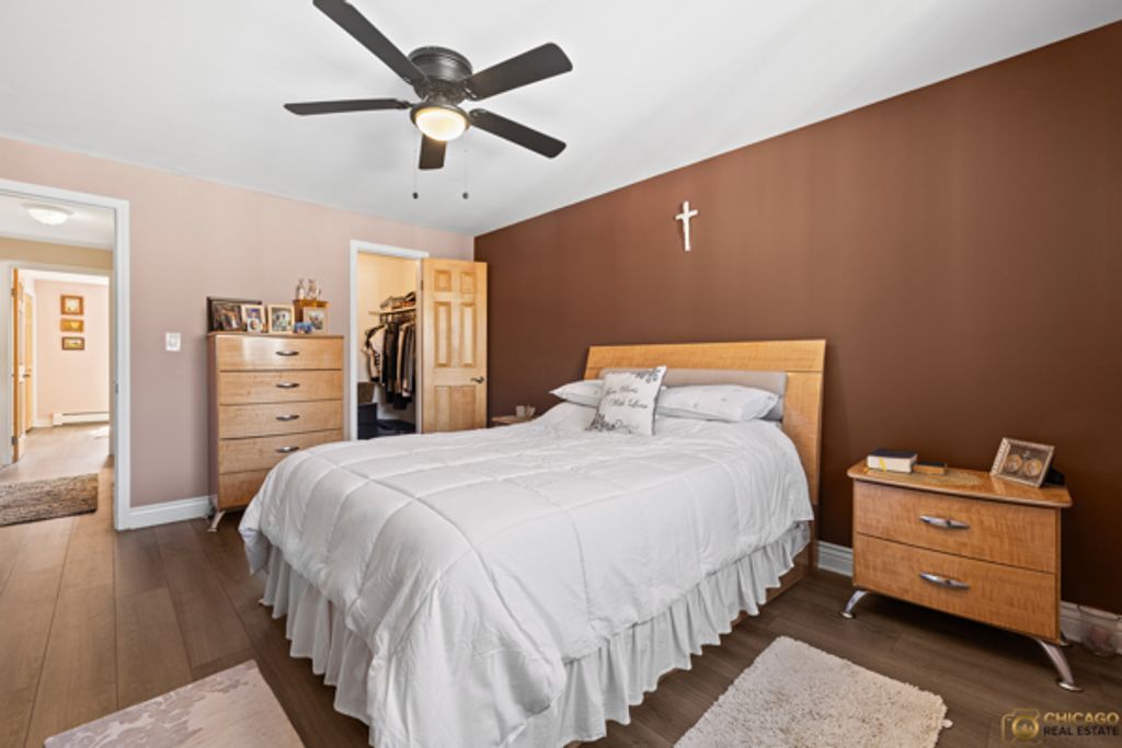 Bright and spacious updated top floor condo. Unit features include a beautifully solid kitchen with maple cabinetry & granite counter-tops, two spacious bedrooms with generous closet space, solid wood doors and crown molding through out. The balcony overlooks a meticulously maintained front courtyard. Additional storage #323 is located in the basement with laundry (2025). Flooring (2024) Assigned dedicated parking space right outside your back door! Close to O'Hare and public transportation (blue line and bus) Kennedy Expressway is a few minutes away as well.
