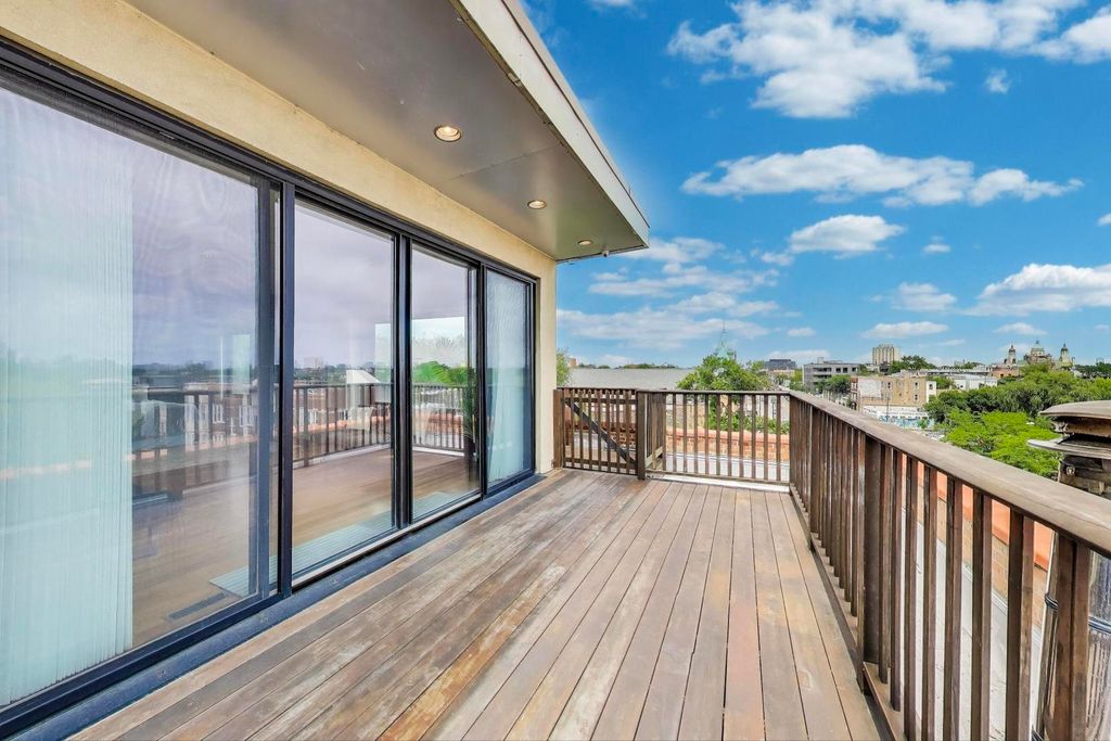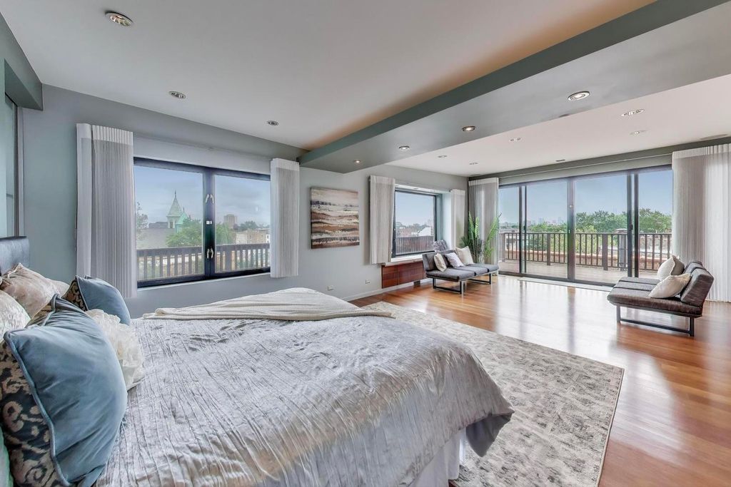 Welcome to 2401 W Ohio #31 - a show-stopping, top-floor 4 bed / 2 bath penthouse duplex in a boutique building in Ukrainian Village/Smith Park. This expansive, light-filled corner unit spans over 3,000 sq ft and showcases true loft character with soaring 16'+ timber ceilings, exposed brick, oversized factory-style windows, and 50'+ of interior width. The main level offers a dramatic open-concept layout featuring a chef's kitchen with Thermador and Bosch appliances, granite countertops, a large island with breakfast bar, and custom cabinetry. The kitchen flows into a massive living room and formal dining area-ideal for entertaining. A spacious main-floor bedroom, full bath, and ample storage complete the first level. Upstairs, you'll find the true primary suite, complete with a spa bath featuring an oversized walk-in shower, and double vanity. The top floor also includes an additional bedroom, a stylish sitting area, a full laundry room, and access to multiple private outdoor terraces, including a wraparound rooftop deck with panoramic skyline views. Additional features include triple-zoned HVAC, two private exterior storage rooms, in-unit laundry, and exterior parking included. Unbeatable location near Smith Park, public transit, top restaurants, and quick access to 90/94 and all that West Town has to offer.