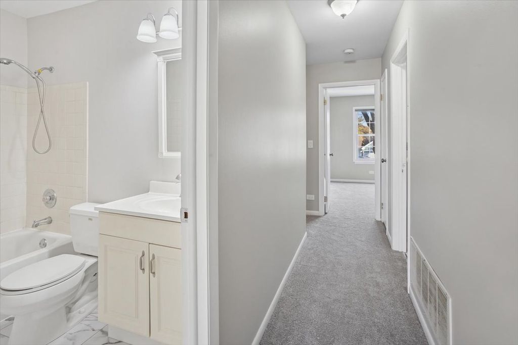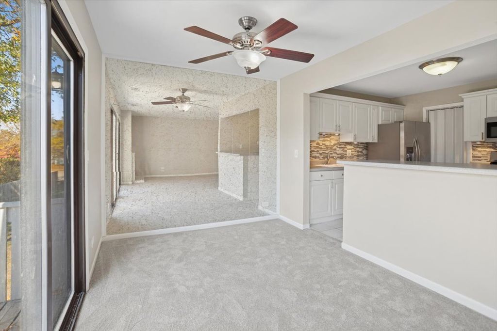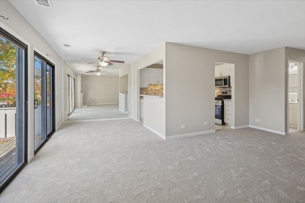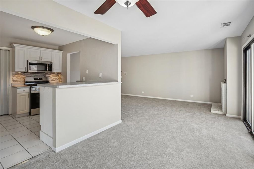 Move-in ready condo located at a quiet cul-de-sac in the heart of Schaumburg. This charming 2-bedroom, 2-bath residence blends comfort, style and convenience. The interior offers a bright and airy open layout, which includes a spacious living room complete with a cozy fireplace and double sliding glass doors that open to a large private deck. The brand new carpet underfoot invites you to kick back and unwind in style. The kitchen has been nicely updated with a sleek glass-tile backsplash, generous cabinetry and pantry space, a breakfast bar for casual dining, and new stainless-steel appliances that bring both function and polish to daily living. With new paint throughout and meticulous finishes, the home feels fresh and crisp. The main bedroom offers a private bath and large walk-in closet. A second full bath serves the guest or second bedroom. In-unit washer/dryer adds convenience. Plus newer furnace and hot-water-heater provide peace of mind and efficiency. Beyond the home, the community truly shines: enjoy the outdoor pool, dedicated park space, clubhouse and the full suite of surrounding amenities. Located just minutes from major shopping, dining and entertainment in Schaumburg, including the famous Woodfield Mall. This property provides both suburban calm and urban access. Schaumburg lies roughly 30 minutes northwest of downtown Chicago, making both city and airport commutes quite manageable. Highlights at a glance: 2 bedrooms, 2 full baths, Living room with fireplace and deck access, Kitchen with glass-tile backsplash, breakfast bar, new stainless appliances, Master bedroom with ensuite bath & walk-in closet, In-unit washer/dryer, New carpet & fresh paint throughout, Newer furnace and hot-water heater, Outdoor pool, clubhouse & park within the HOA, Quiet cul-de-sac location in Schaumburg, near shopping, restaurants & highways.
