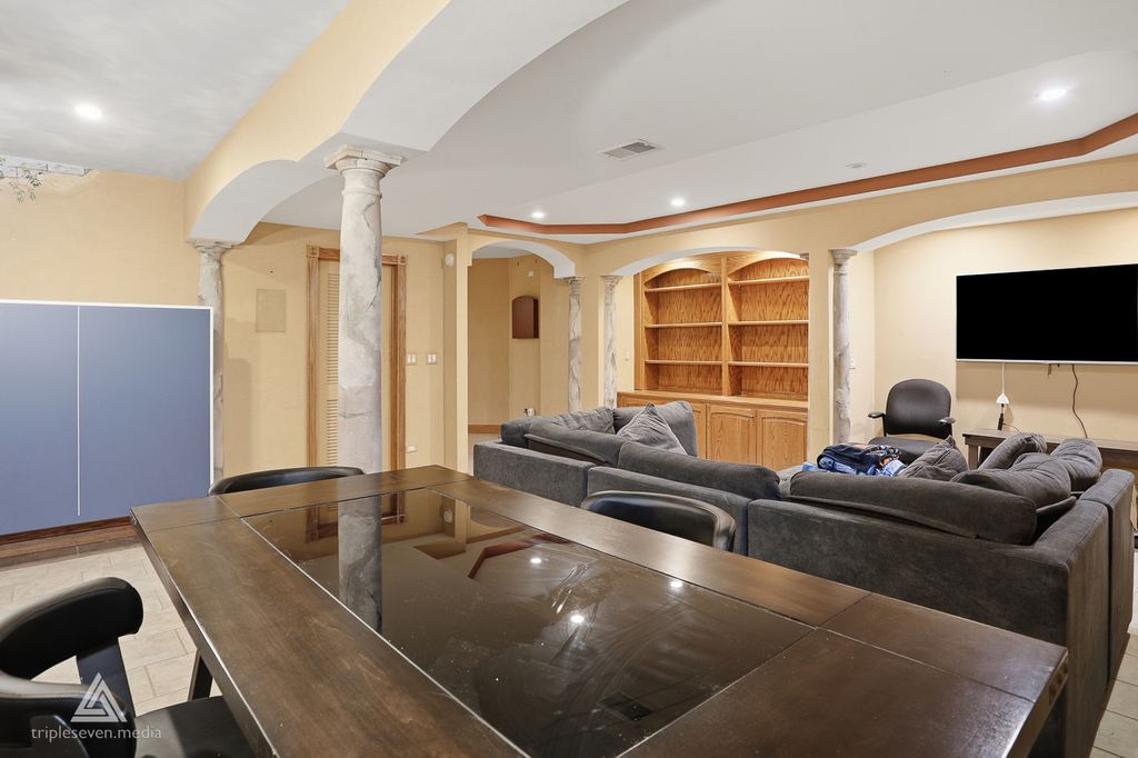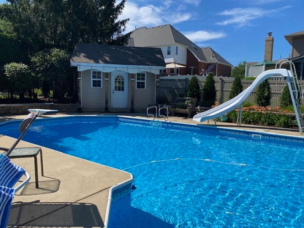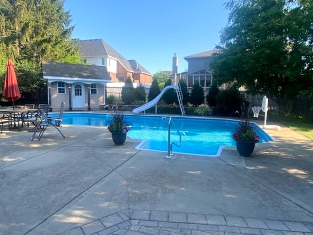 Welcome to this stunning home with 4/5 spacious bedrooms and 3.5 bathrooms. This beautiful home features a newly refinished primary bath in the primary suite and an expansive finished basement with a theatre room, kitchenette, fireplace, 2nd family room, and large bar area. This home boasts a full in ground pool, pool house, gazebo, and beautiful outdoor views ideal for entertaining. The cozy 2 story family room includes vaulted ceilings with 2 skylights and a fireplace. A 5th bedroom on the main floor can also be used as an office space. Light and bright open kitchen with formal living room and dining room areas.