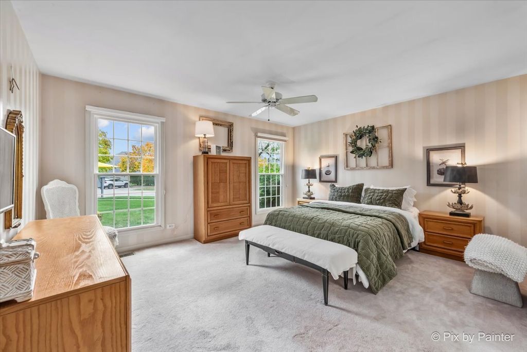 Welcome to the Bloomfield Club. The York model 2 bedroom + loft 2.5 bath townhome with a First Floor Primary Suite + one of the larger interior lots in the community. Step into the two-story living room filled with natural light from skylights and large windows. Look out onto the front gardens from the eat-in kitchen, stainless steel appliances (2018-2020) and granite countertops (2018), pantry closet Main floor laundry (washer dryer 2015) and mudroom offer everyday convenience, especially when coming in from the attached 2-car garage with pull down stairs for attic storage. Primary Suite : a walk-in closet + 2nd closet, a bath with whirlpool tub, separate walk-in shower, double sinks and linen closet. Plenty of room to move comfortably if you have mobility needs. Upstairs, guests (or returning adult kids) get their own space with a private second suite, complete with a walk-in closet and another linen closet. (Primary and 2nd bedroom windows replaced 2020). The loft adds flexibility-ideal for an office, den, craft zone, or it can be converted into a third bedroom if needed. Entertain on the patio with option to expand, you'll appreciate the open view-with no units crowding your space. A full basement ready for your finishing touches. (Furnace and AC 2018, Water heater 2025) Create extra living space, a game room, or your own home gym. And then there's the Bloomfield Club lifestyle: enjoy resort-style amenities including an indoor and outdoor pool, baby pool, hot tub, tennis, pickleball, and basketball courts, and a clubhouse with a rentable party room and library for gatherings or special events. This is easy living in an active community, with the space and layout that make life flow better. Convenient location to local Shopping and Dining. Near Elmhurst Medical Central, Alexian Bros. and Central Dupage Hospital. Easy access to local expressways, Metra to downtown Chicago, O'Hare International Airport. Don't miss this opportunity to own this home in Bloomfield Club. Book your appointment today.