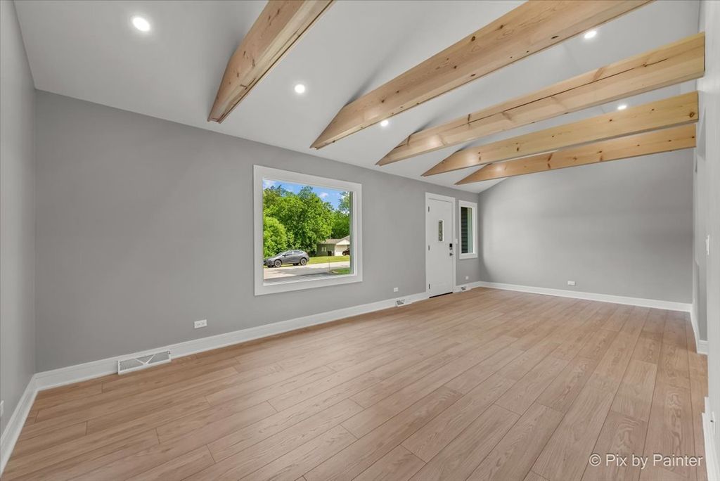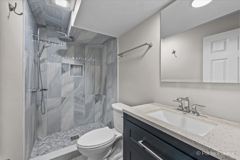 This beautifully renovated home, completed in 2025, offers 1,272 square feet of finished living space and is truly move-in ready. From the moment you walk in, you'll be greeted by a completely transformed interior with an open-concept layout and vaulted ceilings that enhance the sense of space and fill the home with natural light. Every inch has been thoughtfully updated, featuring three spacious bedrooms and two full bathrooms. The brand-new kitchen is a standout, showcasing quartz countertops, custom cabinetry, a matching quartz backsplash, and sleek stainless-steel appliances. Throughout the home, new flooring and recessed lighting add warmth and modern style, while both bathrooms have been fully remodeled with contemporary finishes. Behind the scenes, the property boasts brand-new electrical systems and spray foam insulation for superior energy efficiency. The finished basement expands your living space with a versatile bonus room, and an additional full bathroom-perfect for guests or a home office. Outside, the upgrades continue with new windows, siding, gutters, a garage door, and professionally designed landscaping. The private backyard and patio offer a serene retreat ideal for entertaining or unwinding. Situated in a quiet neighborhood near schools, parks, and shopping, this turnkey property combines comfort, style, and convenience. There's nothing left to do but move in and enjoy-come see what makes this home so special.