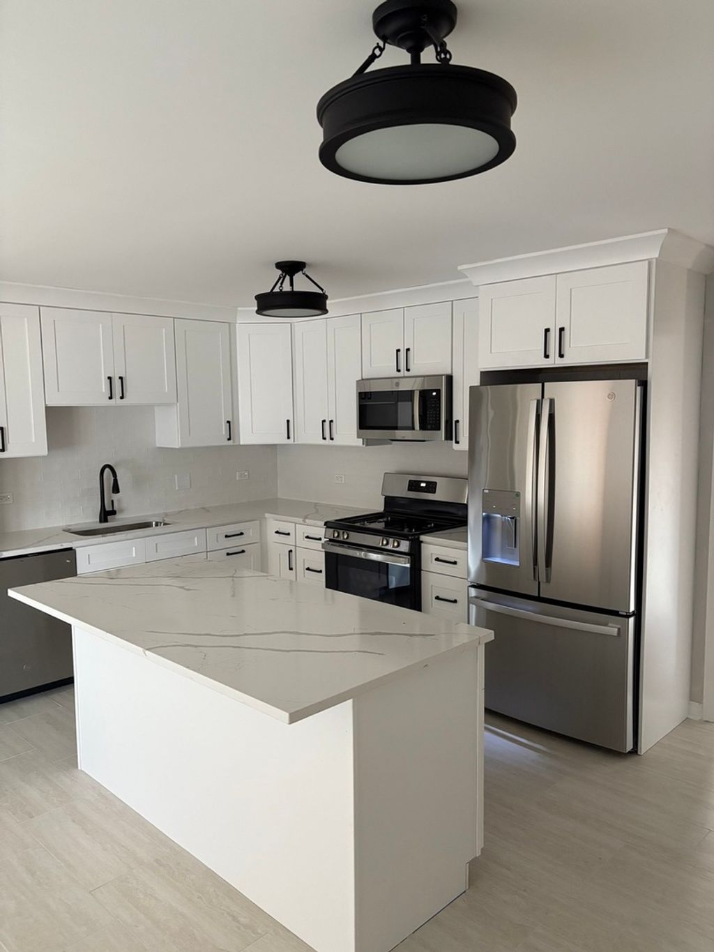 Charm and Modern Style in Every Detail! Welcome to your Beautifully Updated and Move-In Ready HOME! This beautiful 3 bedroom / 2 Bath split level home, located in the Heart of South Holland, offers a perfect blend of comfort, style and functionality. Step inside to an open and inviting floor plan that seamlessly connects the living room and dining area with hardwood flooring -perfect for modern living. Around the corner, an beautifully designed kitchen awaits, featuring stainless steel appliances, Shaker cabinets, and quartz countertops that extend into a beautiful peninsula Upstairs, you'll discover three spacious bedrooms and a beautifully updated full bathroom, all conveniently located on one level for easy living. The fully finished basement expands your living space, perfect for a family room or recreation area. The kitchen overlooks a spacious den, making this home ideal for entertaining guests and hosting gatherings in style. Nestled in a charming neighborhood, this home provides easy access to parks, schools, shopping, and major highways, ensuring an effortless commute and vibrant lifestyle. Contact us today to schedule your showing and experience this beautiful property in person. .