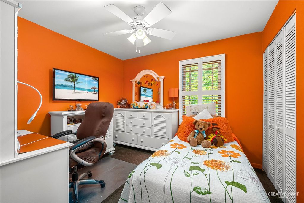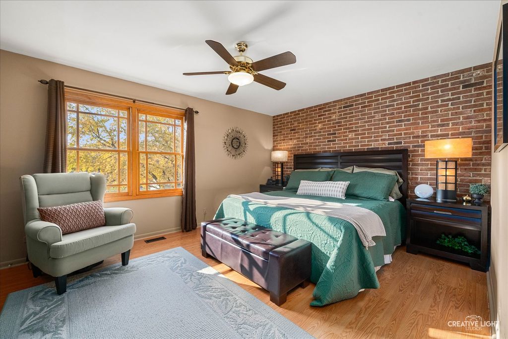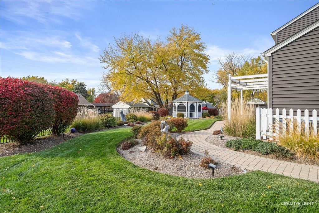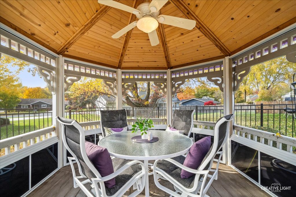 This home shows like a model! Original owner has meticulously maintained and updated this beauty! Great curb appeal with brick walkways and covered porch! Tile entry! Spacious formal living room with plenty of natural light flows into the separate formal dining room with bay bump out! Cozy family room with solid brick fireplace and oversized patio door leading to the gorgeous fenced yard with professional landscaping, brick patio with overhead awnings and separate screened gazebo great for summer nights! Updated dream kitchen with custom cherry cabinetry with roll out drawers, quartz countertops, stainless steel appliances and tile/stone backsplash! Large master bedroom with amazing brick accent wall, walk-in closet with custom organizers and direct access to the updated full bath! Gracious size secondary bedrooms! Bedroom 2 also has a brick accent wall! Partially finished basement with full rec room, flex office/exercise area and finished utility room! Newer windows, roof, siding, gutters and fence! This home is truly mint condition! Park just a short walk away! Quick access to I-90, train and shopping! An absolute gem!