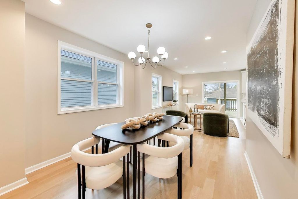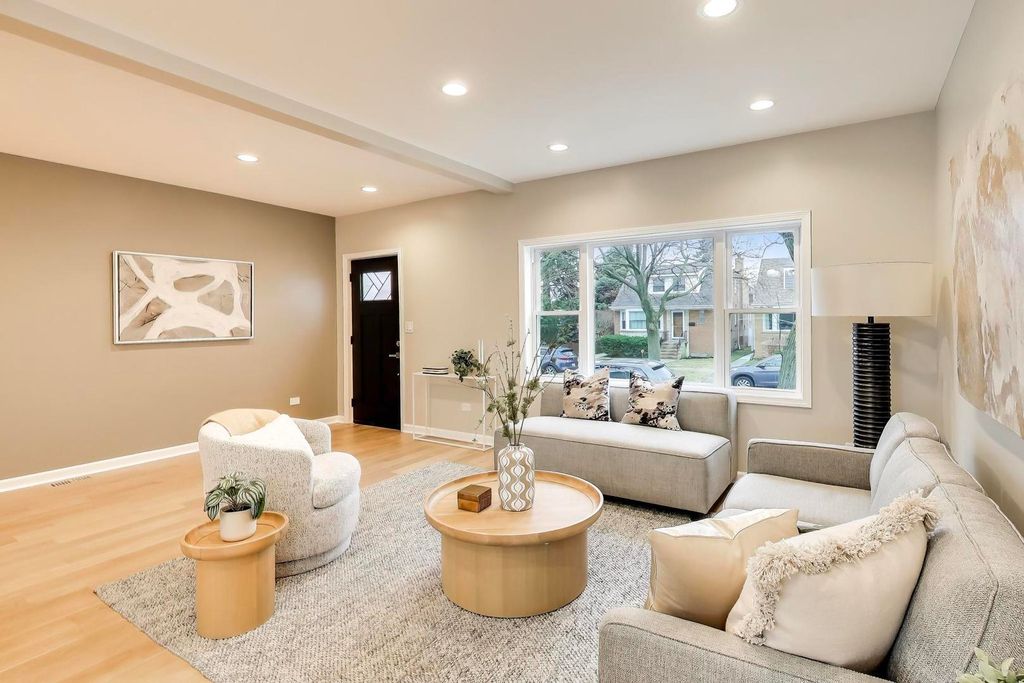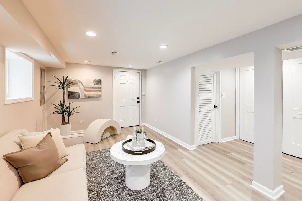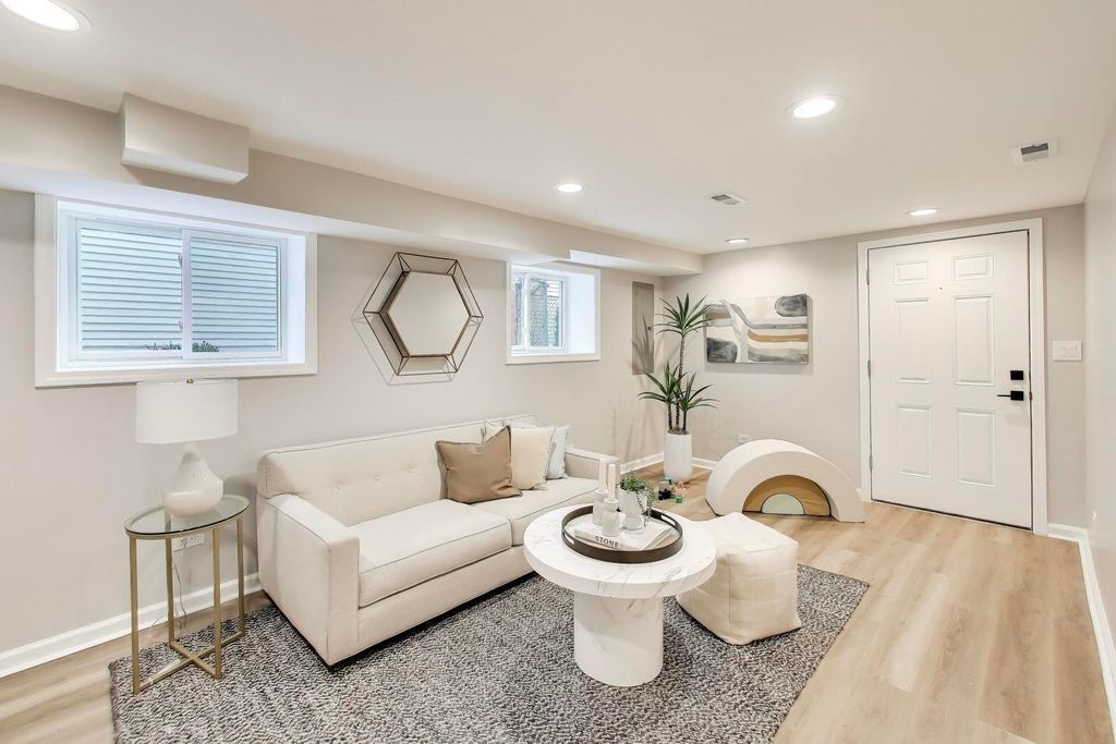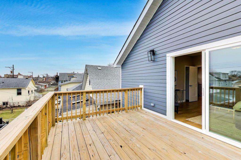 Stunning Portage Park home offering 4 bedrooms (one in basement) and 3.5 bathrooms. Almost new construction with extensive updates throughout.The main level features an open floor plan with white oak flooring, spacious living and dining areas, a family room, and a convenient powder room. The kitchen opens to a rear deck, perfect for outdoor dining and grilling.The second level includes a spacious primary suite with a walk-in closet, private bath, and access to a large private deck. Additional bedrooms are well proportioned and filled with natural light.The finished basement provides additional living and entertainment space and is equipped with a drain tile system. Notable features include Hardie board siding, dual-zoned HVAC, new utilities, a 2-car garage, and multiple outdoor decks. Conveniently located near parks, green space, restaurants, and with easy access to the expressway. All permitted work.