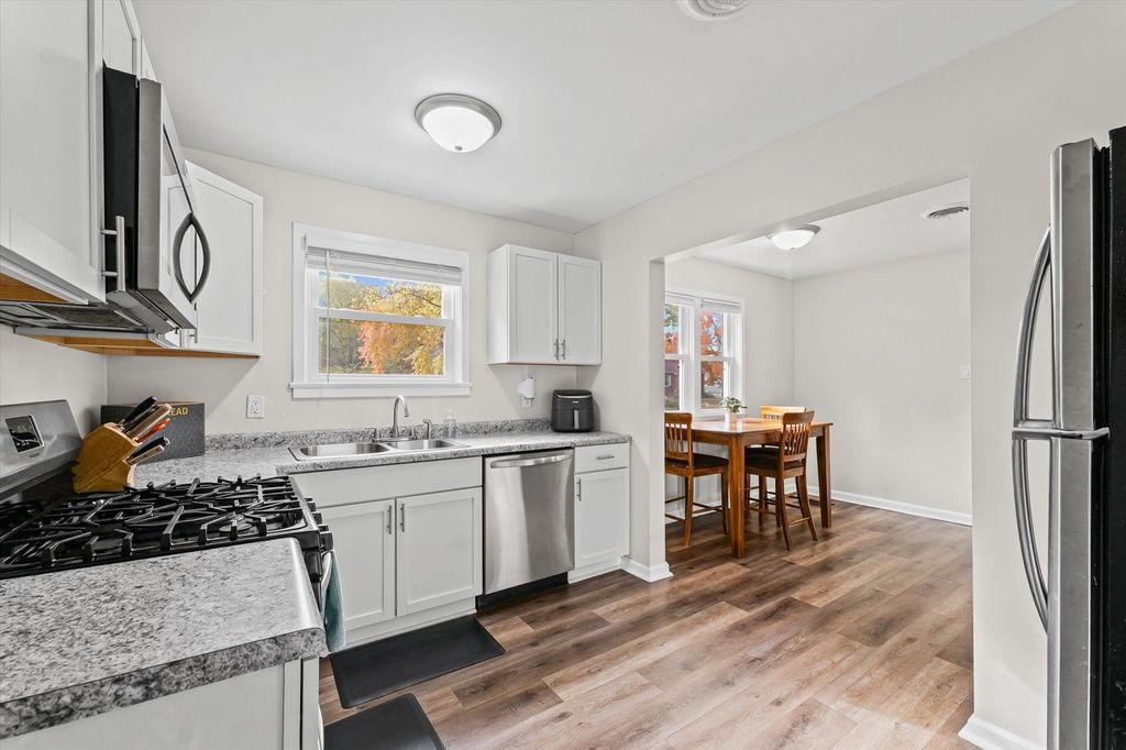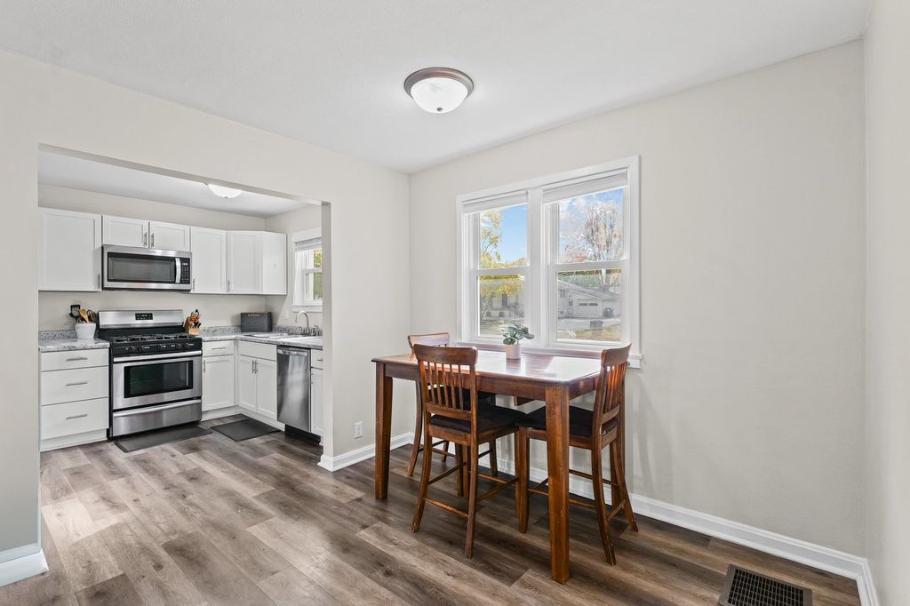 This one has been remodeled and is 100% move-in ready. You'll fall in love as soon as you step inside. Nestled on a corner lot with mature landscaping. Enjoy an open living and dining area along with a fully updated kitchen, including, new cabinets, hardware and stainless steel appliances. Living room comes with custom built mantle holding a wall mounted electric fireplace and tv. 2 bedrooms and an updated bath. New flooring, windows, and fresh paint throughout as well as a recently updated furnace and water heater. Roof was completed in 2022. AC Added in 2023. The garage has been converted into an expanded living space and is now a big part of the living experience this home provides. Exterior paver patio with grilling section. Built in to the garage you'll find a Bar area, liquor shelves, tv space, patio lights, kegerator with 2 taps, trendy bar accents throughout, and a heater make this space you'll never leave. Located in a great Urbana neighborhood, close to U of I, Carle Hospital, the Urbana Farmers Market, restaurants and so much more!