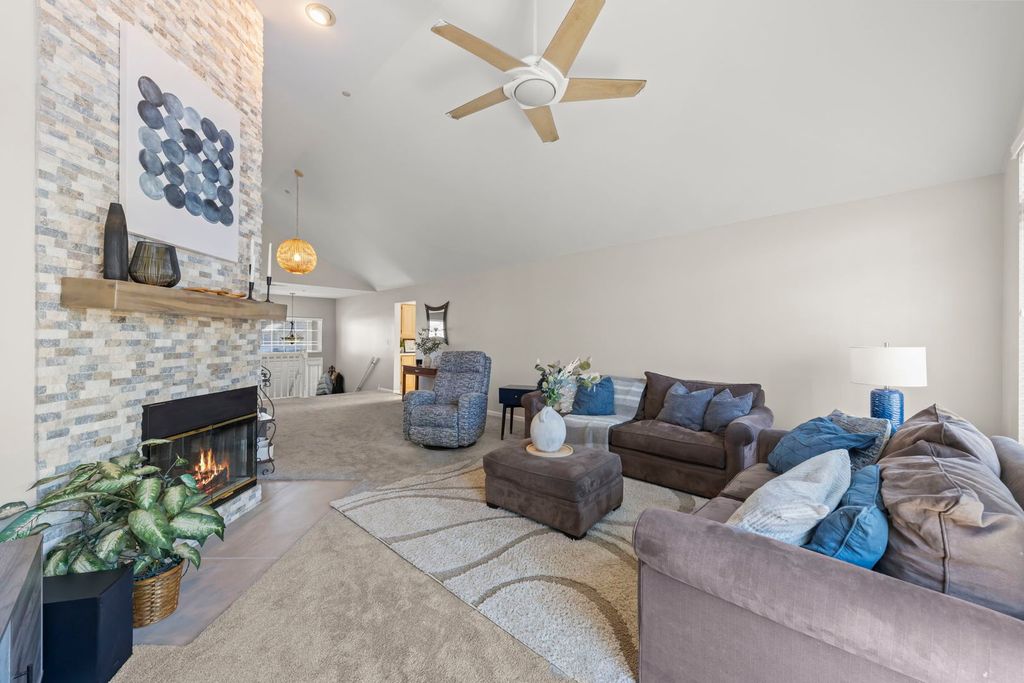 Welcome to 401 Cromwell an updated single level townhome offering two bedrooms and a flexible loft space that's just a door away from becoming your third! Step inside to an airy open concept layout with vaulted ceilings, abundant natural light, and freshly painted neutral tones! The spacious living and dining areas flow seamlessly into the large, eat-in kitchen, complete with all newer stainless-steel appliances! The living room offers tons of natural light and features a beautiful fireplace with modern floor to ceiling stone surround with a real wood mantle, completely redone in 2021. The oversized 14x20 primary suite is its own private retreat, featuring vaulted ceilings, a generous walk-in closet, and an updated full bath with double sinks. Meanwhile, the second bedroom and additional bath are perfectly situated for guests or family. The bright loft makes the perfect 3rd bedroom for a future growing family! In the meantime, it offers incredible flexibility, perfect as a home office, gym, or playroom. With everything on one level, this home delivers the ease of a single-story! An attached two-car garage and private entry add both security and privacy! Recent updates include Feldco windows (2021) New patio slider (2021), HVAC (2021), a new A/C (2025), new carpet in 2021, and a complete refresh in neutral modern colors! An attached two-car garage and private entry add both convenience and security. It's a commuter's dream located just minutes from the Bartlett Metra Station, I-390, and I-90, offering quick access to the city! Hawk Hollow and West Branch Forest Preserve, along with local dining, shopping, and parks, are just around the corner. It's move-in ready, maintenance-free, and impeccably cared for. This Bartlett gem is the perfect place to call home!