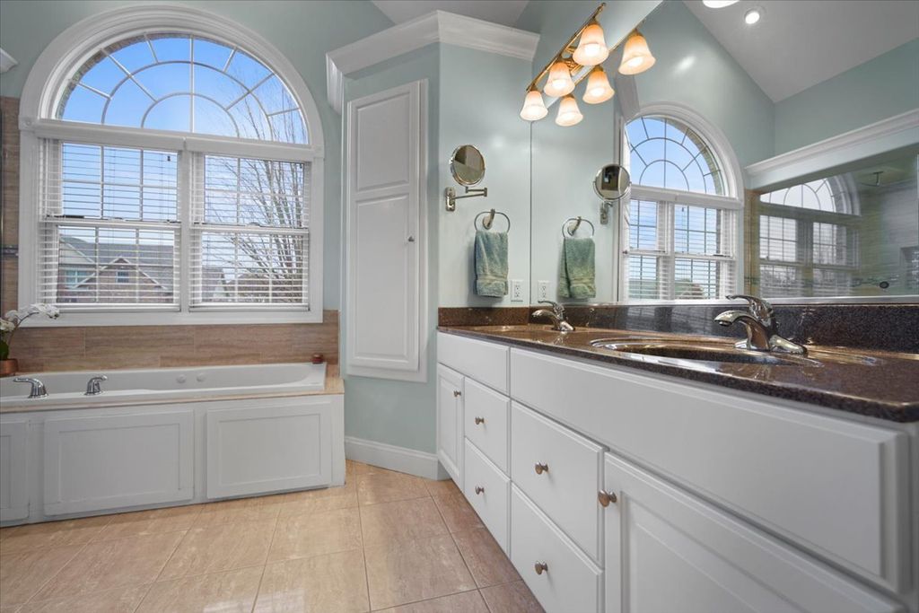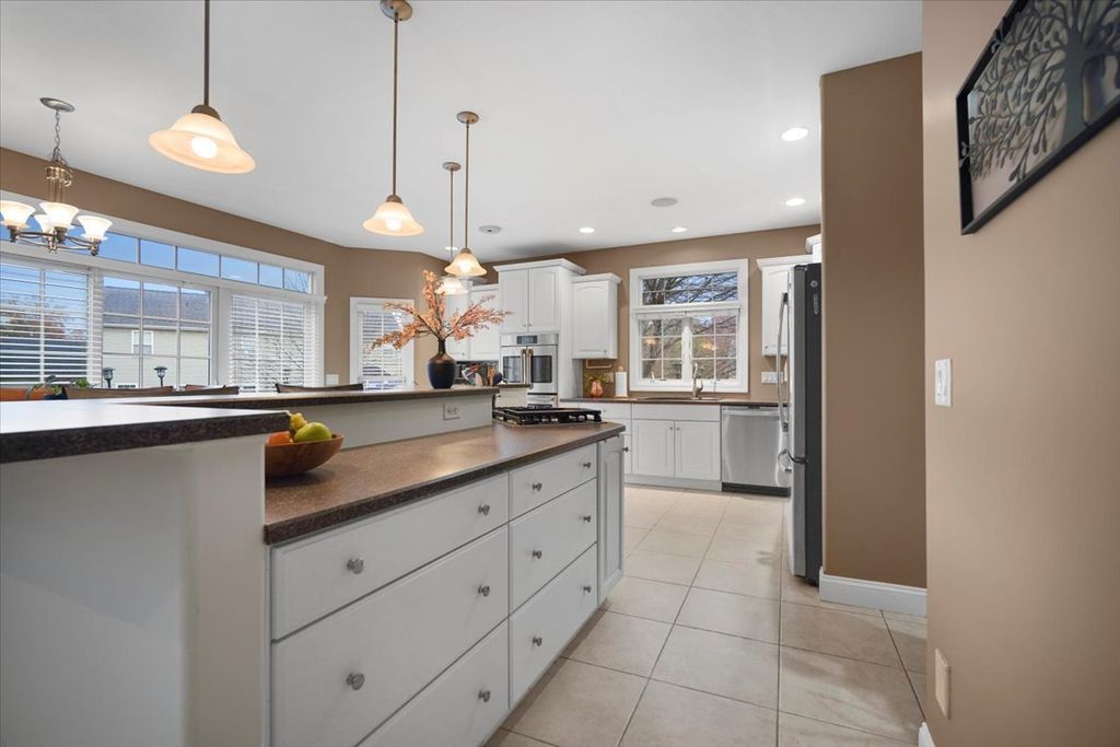 Spacious 6 bedroom home with main floor primary and a 2 story great room open to the beautifully updated kitchen. Kitchen comes with high end appliances, long island and plenty of cabinets. Lots of natural light flows through the main level. Beautiful staircase with custom metal work. Full finished basement has daylight windows and comes with another family room, fireplace, 5th & 6th bedrooms, full bath, exercise room and still plenty of storage space. The 6th bedroom is currently used as an office or can be a media room. The 3 rooms upstairs attached to 2 full baths. The deck is always shady in the evenings and spans most of the back of the house. Extensive landscaping and oversized 3 car garage. Full house stereo. Some new carpet and paint 2025. HVAC replaced 2021. Close to Northpoint Elementary school and Tipton Park.