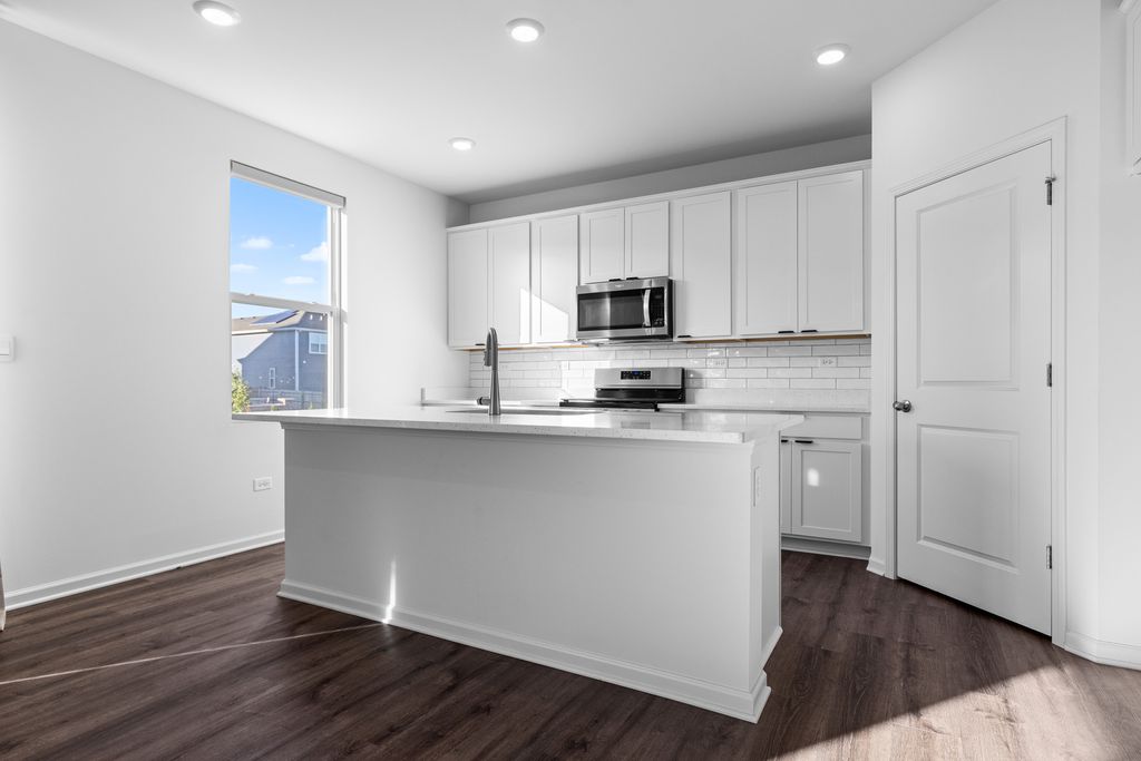 Better than new construction! This stunning Holcombe model offers 2,356 square feet of living space with 4 bedrooms, 2.5 bathrooms, and an oversized 3-car garage. The open floor plan features a bright and airy living room, spacious dining area, and a gorgeous kitchen with 42" white cabinets, white quartz countertops, a large island, and a walk-in pantry. Durable vinyl plank flooring runs throughout the main living areas. The main level also includes a versatile office or playroom and a convenient half bath. Upstairs, you'll find four generous bedrooms, including a beautiful primary suite with a walk-in closet and private en-suite bathroom, plus a second-floor laundry room. The basement provides plenty of storage space, two egress windows, and a Rinnai tankless water heater. Fantastic location near parks and walking trails, with easy access to shopping, dining, and major highways for a convenient lifestyle.