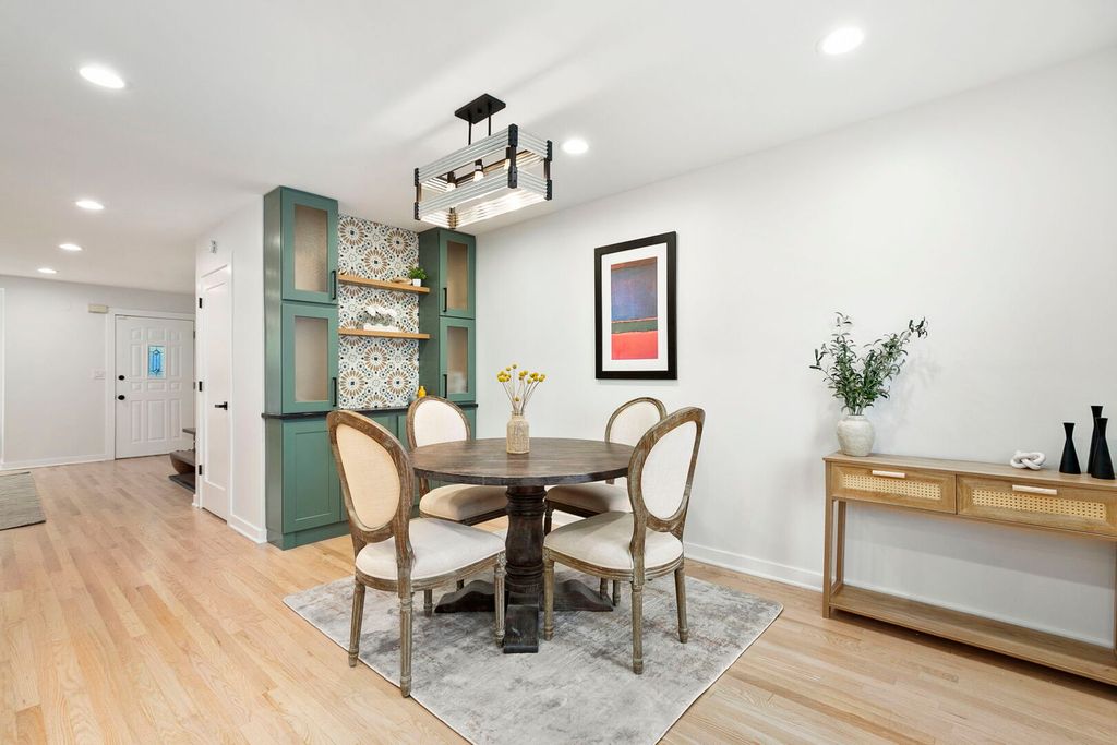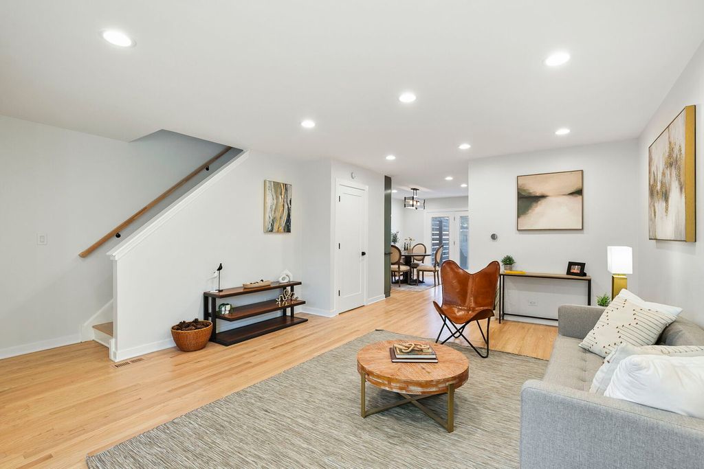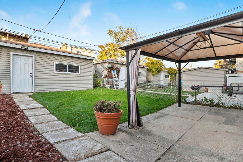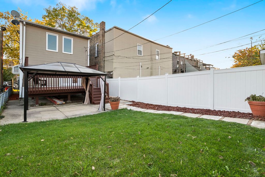 Welcome home to this stunning four-bedroom, two-and-a-half-bathroom, well-maintained single-family home in prime Humboldt Park. This highly updated residence features a wonderful open-concept layout with beautifully refinished hardwood floors, a dedicated dining area with a bar that includes eye-catching tile work, floating wood shelves, and excellent storage. The chef's kitchen is highlighted by quartz countertops, white cabinetry with black hardware, stainless steel appliances, and a custom range hood. Just off the dining room, you'll find a large, private deck-perfect for entertaining-that leads to a secondary patio with a covered pergola, lush green space, and a two-car garage. Upstairs, the home offers three bedrooms, a convenient side-by-side laundry room, and a spacious full bathroom with a double vanity and soaking tub. The expansive lower level includes a full bathroom, an additional bedroom, and a generous living room with impressive ceiling height-ideal for relaxation or entertaining. Located just blocks from beautiful Humboldt Park, the 606 Trail, and all the great restaurants and bars that Logan Square and Humboldt Park have to offer, this home is truly not to be missed!