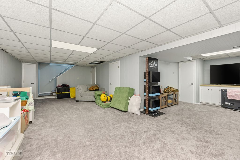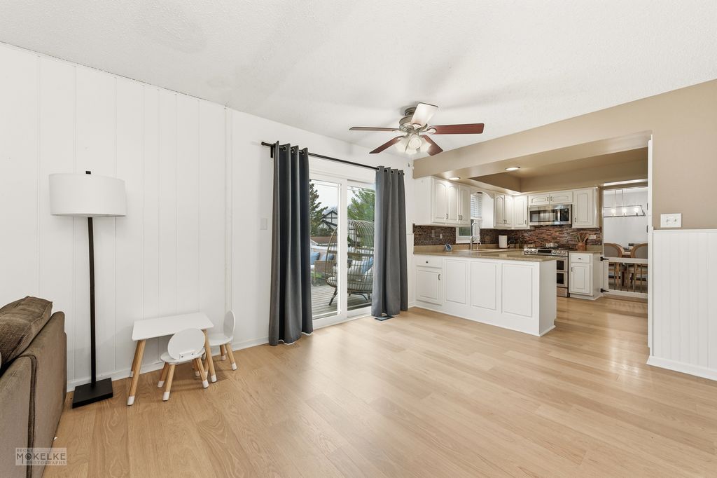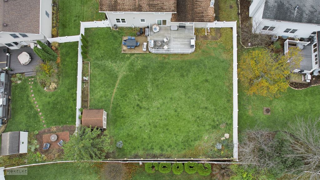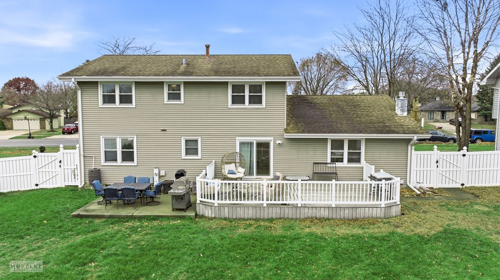 Welcome to your new home..... As you approach, you're greeted by an oversized front porch-perfect for relaxing and enjoying the outdoors. Step inside to find brand-new wood flooring, a large picture window that fills the space with natural light, and custom window treatments. Fresh paint and updated fixtures add a modern, move-in-ready touch throughout. The updated kitchen offers ample cabinet space and opens to a charming breakfast room and a cozy family room featuring a fireplace and custom window. A sliding glass door leads from the kitchen to your fully fenced backyard, complete with a spacious tiered deck, oversized concrete patio, and a shed for additional storage. The finished basement provides a versatile play/rec room and generous additional living space-ideal for entertaining or hobbies. Upstairs you'll find four generously sized bedrooms, abundant closet space, and two fully updated bathrooms. This home is truly turn-key and ready for you to move right in.