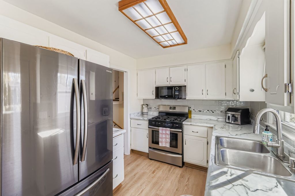 You're in for a treat! Newly available lovely tri-level home on a quiet, tree lined, cul-de-sac street. Completely turn key home with nothing to do but move in! This home has been lovingly cared for by the same owners for over 30 years. Lots of very usable space--You'll enjoy & appreciate the freshly painted and spacious living room/dining room with original hardwood floors and big picture window overlooking the neighborhood. The kitchen, with new vinyl plank flooring, also has a convenient breakfast nook for those busy mornings when the dining room is just too far away! All three bedrooms are on the second level along with a full bathroom (with tub). All of the rooms are bright & nicely sized--with ample closet space too. Lots of natural light in the lower level's family room as well as a large utility room with washer/dryer and a newly rehabbed full bathroom with a walk-in shower (2024). Lots of additional storage/ closet space on the lower level including a crawl space. Rounding out this complete package of a home is a big backyard & detached garage. You'll want for nothing!
