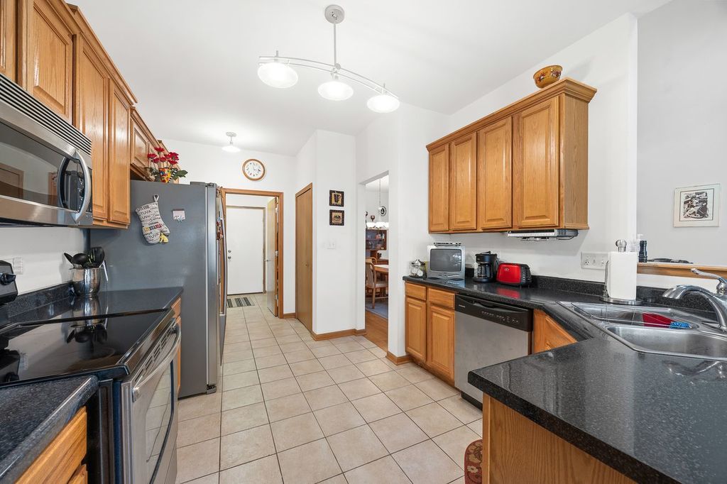 Experience beautiful Amberwood, nestled within the treasured Village of Lemont. Ideally positioned END-UNIT, this gorgeous townhome offers everything you need for modern living. Step inside, an elegant 2-Story foyer with opulent chandelier, flowing seamlessly to the formal dining room and into the stunning living room, adorned with soaring VOLUME ceilings, creating the ultimate space for relaxation and entertainment at its best. Lovely oak HARDWOOD floors add a touch of warmth and elegance to these areas This rare gem features TWO spacious PRIMARY BEDROOM SUITES. The first primary suite is conveniently located on the MAIN LEVEL for effortless accessibility. The next primary suite is on the 2nd Level, creating a blend of privacy and flexibility, ideal for guests or RELATED LIVING. Both primary suites boast lovely TRAY ceilings, a full bathroom, white Corian vanities, a glass-enclosed walk-in shower, generous closet storage, and a Spa-like soaking tub for deep relaxation on the main level. A 3rd Bedroom and additional full bathroom are on the main level. An open staircase leads upstairs to the 2nd level which includes a huge versatile LOFT, overlooking the airy foyer on one side and living room with VOLUME Ceilings on the opposite end, while skylights from the LOFT and Living Room fill the space with optimal natural sunlight. A dedicated OFFICE is also on the 2nd level, ready for all your work from home needs. Whether you're preparing a family meal or entertaining guests large or small, the spacious chef's kitchen is sure to meet your needs, with Classic Warm Oak cabinetry, expansive counters and ample pantry storage. You'll love the cozy breakfast bar with your morning coffee. The adjacent dinette eating area, with stylish lighting to enhance the ambiance, offers a perfect place for casual dining, with a nice window view to the outdoor patio area. Venture outside the glass kitchen door to a secluded backyard concrete PATIO, for hosting gatherings or enjoying a relaxing oasis, with nature as your backdrop and amazing views. A convenient main floor laundry room and direct access to an attached 2-car garage add to the home's functionality. For those desiring EXTRA space, the huge FULL BASEMENT provides endless possibilities, ideal for storage or future expansion, whether a recreation room, gym or additional living quarters. Roof 2022, Water Heater 2025. Enjoy the Maintenance-free lifestyle your desire, complete with landscaped and cared-for grounds. Ideal location within minutes to vibrant downtown Lemont, Parks, Golf, Metra, Highways, Shopping, Dining, Schools, including Blue Ribbon Lemont H.S.