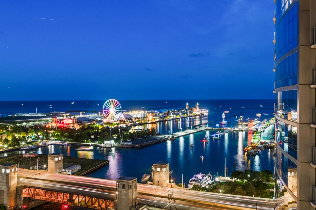 Enjoy forever stunning views of water, city, sunrise, Navy Pier and fireworks from private terrace. Regatta tucked into the heart of Lakeshore East with unobstructed and permanent views of the Chicago River, Chicago's skyline and some of he most iconic and important buildings of the 1920s and 1930s Renaissance periods like the Merchandise Mart, Chicago Tribune Tower, Intercontinental Hotel an more modern structures of the last 25 years north of the river. Exquisite twilight and night time views north, west and east along the river and towards Lake Michigan and Navy Pier, Ohio Street Beach. Larger near 1500 square foot, split 2 bedroom and 2.1 bathroom floor plan boasts en-suite luxury finishes with powder room off entryway. 24'x15' living/dining space in addition to large entertainer's kitchen featuring all-wood cabinetry, granite counters, stainless steel appliances, under mount sink. Primary bedroom with walk-in closet and ancillary closet for additional storage, dual vanity, separate shower and soaking tub. Second bedroom, en-suite includes walk-in closet, soaking tub/shower combination, raised vanity and medicine cabinet. This is a full amenity building with 24 hour doorstaff, onsite management, maintenance, engineer and property manager. Dry cleaners, library and common room, hospitality. Indoor lap pool, locker rooms, whirlpool, state of the art complete and comprehensive gym, beautifully outfitted hospitality room for private events, billiards room and dry cleaners onsite. Assessment includes cable/internet, cooking gas, gas forced heat, cold air for central air conditioning and all amenities. Tandem garage parking space for two cars @ $65,000 additional (P-229). Well funded with over $3.1M in reserves and no special assessments.