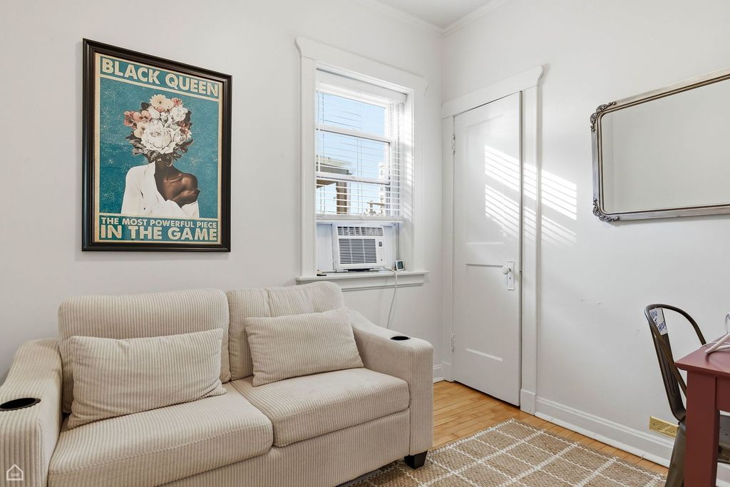 Chicago Glam calls this property home! Spacious and well laid out, natural light throughout, refinished hardwood floors, and lovingly renovated 3 bed/2 bath home in East Hyde Park. This home features over 1700sf of living space, plus a private back porch, and access to an enclosed private backyard. Sunny and large living room, vintage details include floor-to-ceiling built-in shelving flanking a decorative fireplace, and a south-east-facing sunroom which looks out over a quiet tree-lined street. The bedrooms are generous in size, each with a walk-in closet, dramatic yet cozy; the third bedroom is off the kitchen and serves perfectly as a guest room/home office. The separate dining room has space for all your entertainment needs - large dining table, bar, buffet, club chairs, etc. The kitchen has 42" newly painted cabinets with quartz countertops and extra depth for the upper cabinets, all new SS appliances, updated flooring, walk-in pantry, and a kitchen table with bench seating and built-in storage. In-unit combo washer/dryer. The property has ample storage - walk-in closets in each bedroom, 2 large closets in foyer/hallway - plus a large storage room in the basement. This 6-unit, well-maintained boutique building is professionally managed, has an exercise room, bike storage, and additional open space in the basement. The home is just steps from everything Hyde Park has to offer - our world-class lakefront, University of Chicago, CTA, and quick access to LSD and 90/94, a variety of restaurants, shopping, the Museum of Science and Industry, and the beautiful Jackson Park District. No investor rentals.