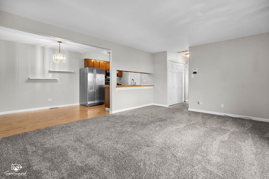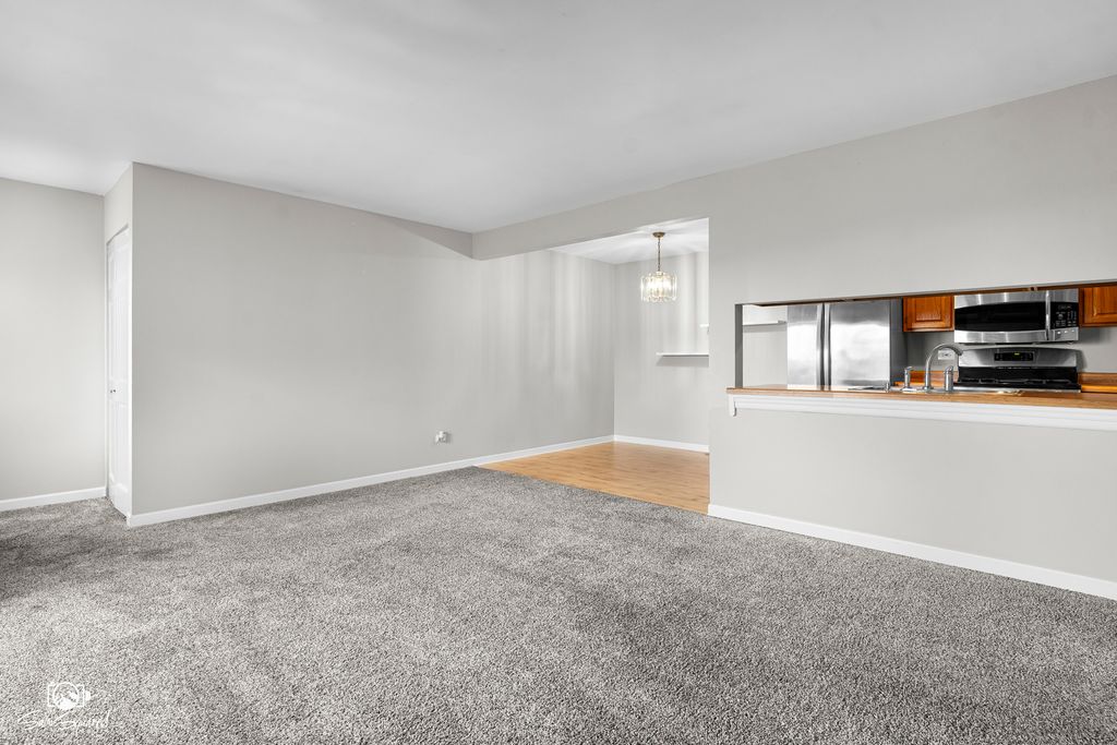 Welcome to your spacious first-floor condo in highly sought-after Tinley Park! This move-in ready home offers an open-concept layout with two large bedrooms, one updated bath, and a detached garage. The bright living room flows seamlessly into the galley kitchen featuring stainless steel appliances and an adjoining dining area. Both bedrooms are generously sized, and the modern bathroom was fully remodeled in 2024. Enjoy the convenience of full-size in-unit laundry and an additional exterior parking space. Spend summer days relaxing in your semi-private courtyard. Perfect for downsizing or investment-rentals are allowed! Ideally located near parks, shopping, restaurants, and more.