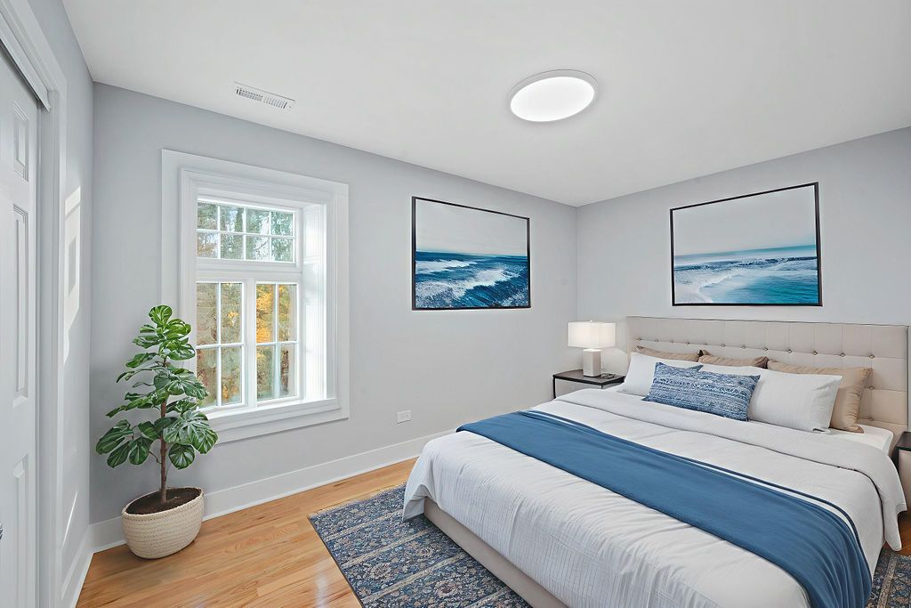 NOT FOR RENT! SHOWING NOTICE REQUIRED! Oversized city lot with a spacious 2-story single-family home offering incredible potential and thoughtful updates throughout. Step inside to high ceilings, an open-concept main level, and an expansive kitchen with a large island, quartz counters and backsplash, stainless steel appliances, and overhead lighting. Main floor also includes a full bath and a generous bedroom with a (9x8) walk-in closet. Beautiful wide staircase with chandelier leads to the 2nd-floor primary suite (15x12) with full bath and walk-in closet, plus additional large bedrooms with custom closet shelving for abundant storage. Fresh paint, white trim, hardwood floors, and a full basement bring a clean, elevated feel. Dual furnaces and A/C units for efficient comfort. Updates include roof, windows, siding, plumbing, electrical, fencing, and decks. 2-car garage. Located on a quiet tree-lined street and moments from Wolf Lake, South Shore train, expressway access, and the Indiana border.