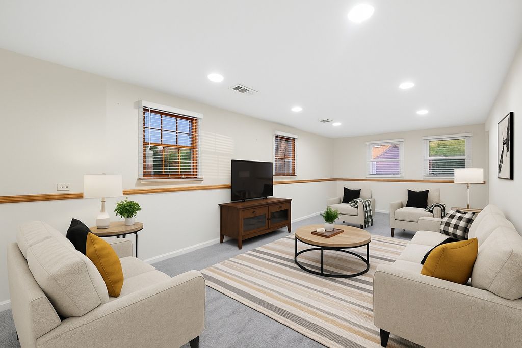 Welcome to this bright and inviting split-level home near Kimball Hill Park! This well-kept home features an open living area with big windows, hardwood floors, and plenty of natural light. The kitchen offers white cabinets, stainless steel appliances, and a handy island for extra space. Upstairs, you'll find three comfortable bedrooms with hardwood floors and ceiling fans. The main bathroom has a large vanity and a clean, modern look. The lower level includes a spacious family room with brand new carpet, another full bathroom with a shower, and a laundry room with extra storage.Enjoy the large backyard with a patio-perfect for relaxing or entertaining. The home also includes an attached garage and 2 car driveway and shed on the back.Furnace 2022. Roof and siding about 10 years old. Located just 2 miles from the future home of the Chicago Bears and close to parks, schools, and shopping, this home offers comfort and convenience in a great location!Property taxes will be lower after the homeowner exemption.