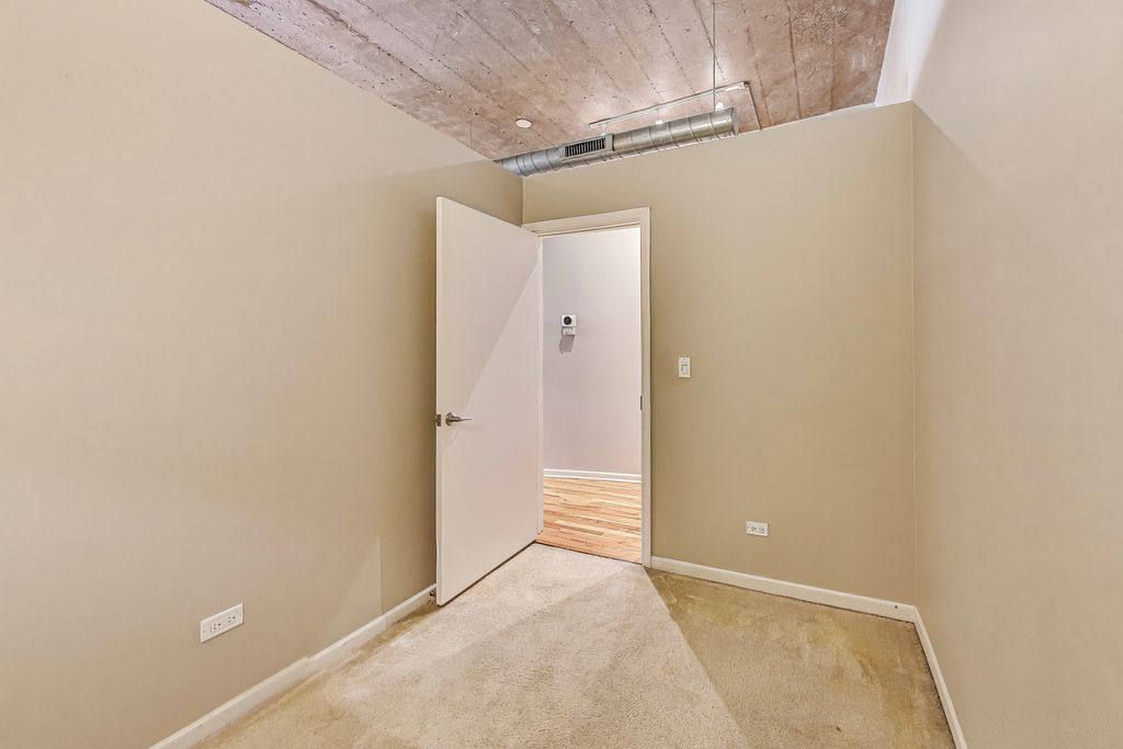 University Commons! Quiet and pristine 2BD/1BA INCLUDES HEATED, GARAGE PARKING! This Courtyard-facing, loft-style condo features a fully-enclosed primary bedroom with a huge walk-in closet. A reconfigured fireplace totally opens up the space in the main living area. This gleaming condo boasts real oak hardwood floors, granite counters and stainless steel appliances. Washer/dryer in unit. Enjoy quiet evenings on your large, private balcony, overlooking a beautifully landscaped courtyard. DirecTV and Internet are included in the monthly assessment. University Commons is an extremely family-friendly/pet-friendly historical complex converted in 2006 and made up of six buildings in Chicago's University Village neighborhood. In addition to its superior location, pinned between Little Italy and Pilsen -- and just 13 blocks from the hot West Loop -- the buildings offer a slew of amenities including gyms, recreation rooms, 3-sided decks, an outdoor pool and a 26-seat movie theater for streaming, watching Bears games, etc. Come see us today!