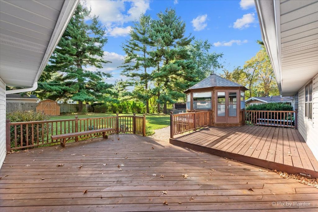 This single-family MOVE IN READY home offers over 2,400 square feet of inviting living space, perfectly blending classic character and thoughtful upgrades for modern lifestyles. Step into the welcoming kitchen with rich cherry cabinets, complemented by extensive hardwood floors throughout the main living areas. A recently updated space features new flooring for a fresh, contemporary feel. The home includes two fireplaces, ideal for creating cozy gathering areas for family and friends. Off the kitchen offers a perfect space to serve as an in-law suite, extra bedroom, office, or playroom. The bathrooms are designed for comfort and accessibility, highlighted by walk-in showers. Peace of mind comes with a roof replacement in 2022, a new water heater. and whole house fan. Outdoor features impress with a newly stained deck and a charming gazebo-ideal for entertaining or unwinding while overlooking the expansive backyard. The property is shaded by mature trees and offers abundant space for activities, gardening, or relaxing in your own private retreat. In addition to the outstanding features of the home itself, enjoy the convenience of a nearby park, making it easy to get outdoors for recreation or leisure. With a generous 0.41-acre lot and every detail carefully considered, this property offers the perfect combination of style, space, and location for today's homebuyer.