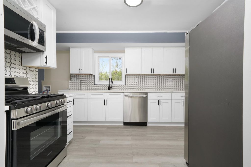 Fully rehabbed 4 bed 1 bath Cape Cod home in Park Forest. Walk into this cozy home that has been completely updated. The living room is completed with brand new flooring, recessed lighting and a fireplace, perfect for entertaining and ambience. The brand new kitchen features white shaker cabinetry with a custom wine rack, granite countertops, a modern tile backsplash and stainless steel appliances. The home has all updated with all new plumbing and electrical. Fully fenced in backyard with a brand new carport and concrete driveway. TRULY A MUST SEE!