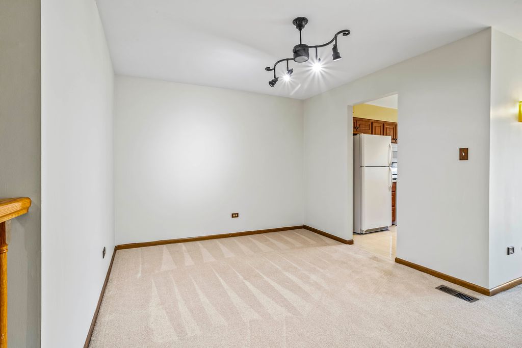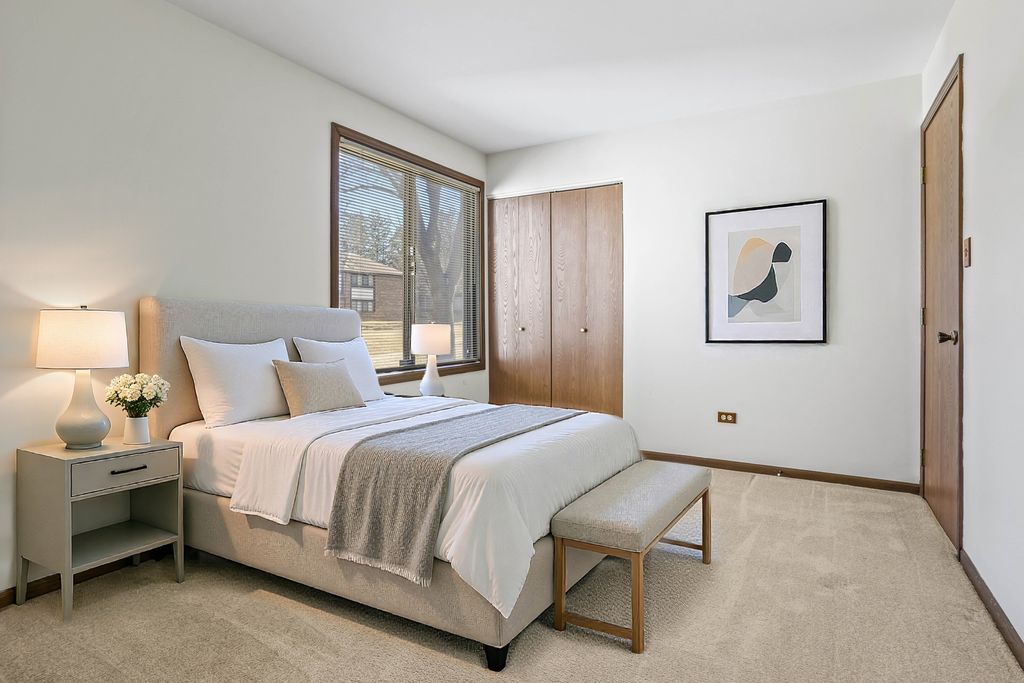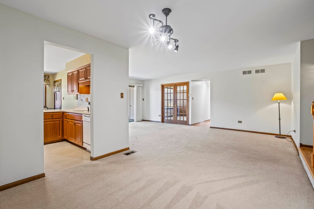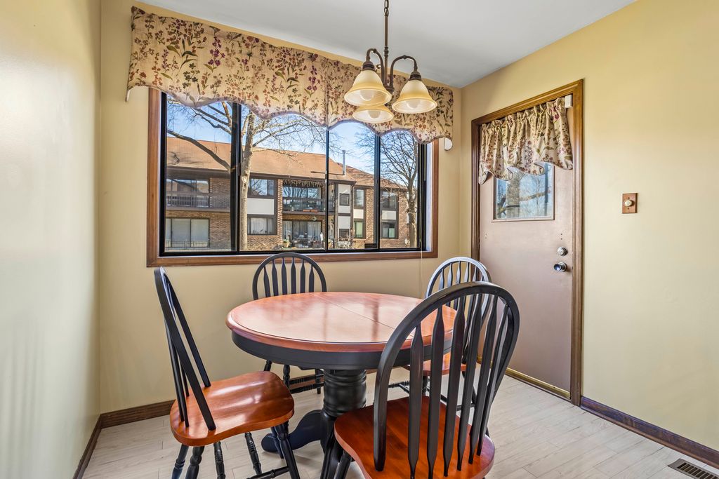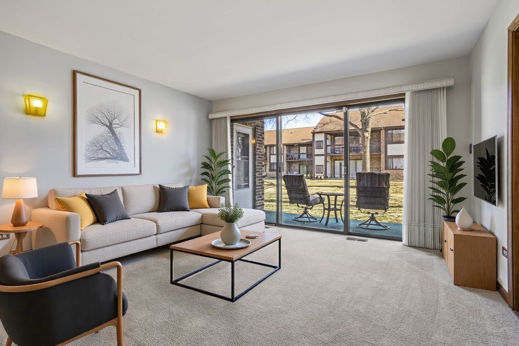 Welcome home to this beautiful, rarely available FIRST FLOOR condo in the Villas of Deer Creek. Tucked away on a low traffic cul-de-sac, this 3 bedroom RANCH STYLE residence offers over 1,400 sq. ft. of comfortable, well designed living space. The home has a clean, move-in-ready feel thanks to the fresh, neutral paint in most rooms (2026). Step into the bright, open family room, where the versatile design allows space for a game table or desk alongside a sun filled living area with sliding doors to the patio. The large dining room is ideal for hosting guests or casual dining. The beautiful kitchen offers refinished cabinetry, Corian countertops, tile backsplash, and all appliances, along with a bright eating area that provides convenient access to the patio. The spacious primary suite includes a generous walk-in closet and an attached, private bathroom with a shower. The second bedroom offers great space and storage. The third bedroom, with a double-door entry, is a flexible space that can function as an office or a den. An adjacent, full bathroom features an oversized oak vanity and a classic shower/tub combination. A dedicated laundry room, complete with washer, dryer, sink, and cabinetry, adds everyday convenience. Great closet and storage space including a secure, outdoor storage closet off the patio. Recent updates include: roof (2022), exterior painted (2025), A/C (2024), furnace with an April Aire humidifier (2022), hot water heater (2023), driveway (2024) and interior painted (2026). A covered concrete patio is perfect for outdoor relaxation as it overlooks lush green space and mature, established trees. The attached, 1 car garage provides additional storage, and guests will appreciate the ample parking. The HOA maintains strong reserves and has completed recent improvements, including driveways, roof, exterior lighting, and refreshed common areas. Close to shopping, dining, and expressways, this is an exceptional opportunity to enjoy maintenance free living in a prime location.