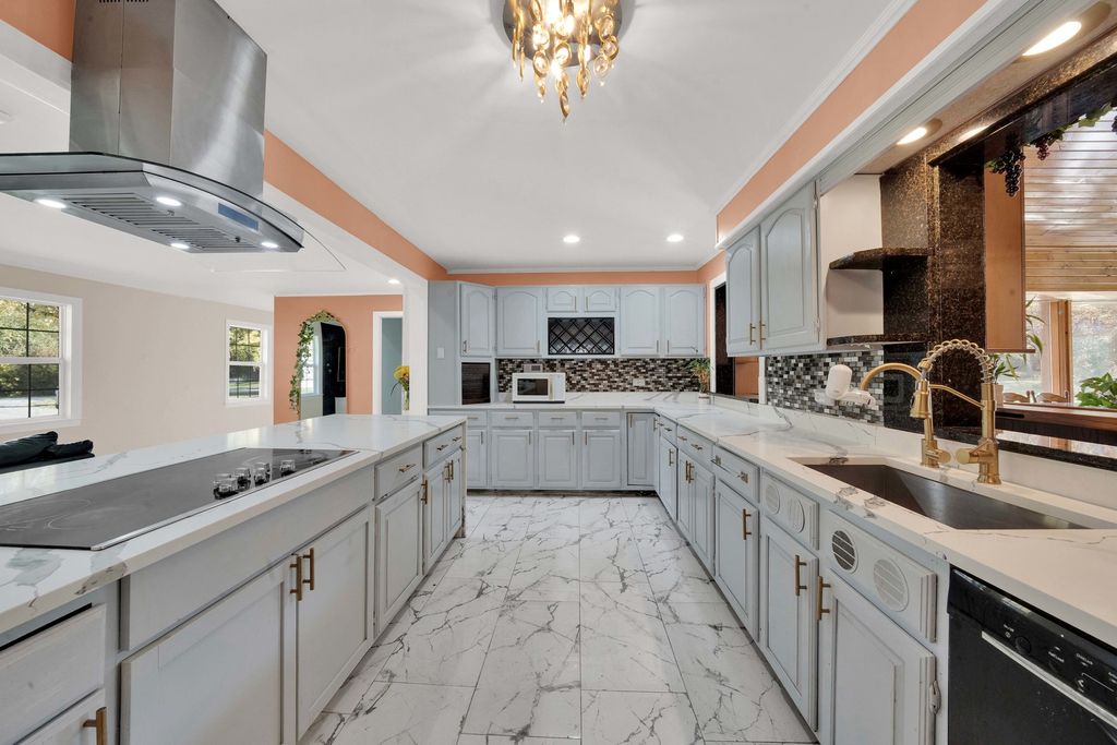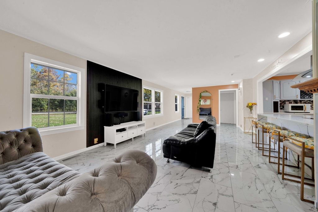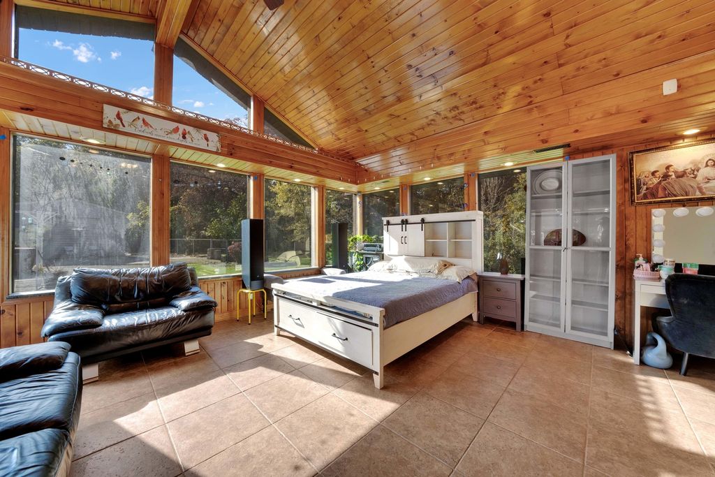 Fantastic opportunity! This beautiful ranch home sits on almost 2 acres of picturesque, wooded land! Lot is quiet and very private with stunning backyard forest views. This well loved and well taken care of home is now ready for your updating and personal touches. Primary bedroom has large closets and its own private entry to the backyard and patio. Down the hall, another bedroom, and beautifully updated full bathroom. This spacious spa-like oasis bathroom features a separate shower and Jacuzzi tub with large windows looking out to a private deck, fountain and lots of greenery. Living room complete with office nook; lots of storage and fireplace. The kitchen has 2 large pass-thru openings into the bar area of the great room. As you walk into the massive rustic great room addition with vaulted wood ceilings you'll see large windows in every direction that brings ample natural light from every corner. This room is perfect for watching the snow fall on a winter night or the rain during the summer months. You will find yourself curled up on the couch next to the fireplace for a cozy night. Plus it's the perfect party space! Lots of room for entertaining at the custom made granite table that seats 8+ and custom bar with storage and additional seating. Multiple doors bring you outside where there's even more room to entertain and hang out. Huge deck, hot tub and plenty of room to roam. Home also features a large circle driveway with lots of parking and garage space. Attached garage includes a refrigerator and freezer. Detached garage can be used as a flex/bonus room and would be perfect for your home gym. Another outbuilding is great for storing all your gardening supplies or recreational gear. The basement is plumbed for a shower & sink, and the large closet area on the main floor was designed for a primary bath! This home is equipped with a security system with video both inside and outside. This is a "Must See" with many possibilities - a great place to live!