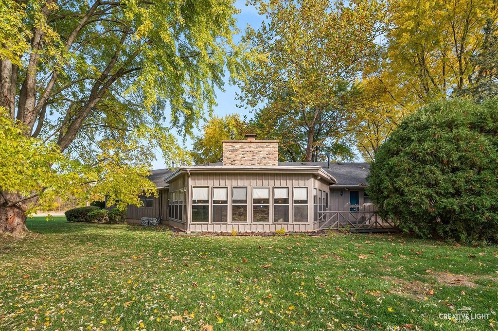 Discover the appeal of this classic brick and frame ranch style home, perfectly situated on an expansive, almost one-acre lot dotted with mature trees for exceptional privacy and curb appeal. This property has been lovingly cared for by a longtime owner, reflecting years of meticulous maintenance and pride of ownership. Enter the front door to the large foyer and step down into the spacious and inviting sunken living room, a defining architectural feature that adds character and a sense of coziness. There is a large eat-in kitchen offering plenty of cabinet space, a functional layout and room for a large table. The home also features three bedrooms, a den and 2 full bathrooms. There is a very unique enclosed porch that hugs the rear of the home. You will enjoy easy access to the Reagan Memorial Tollway, making travel and commuting a breeze.