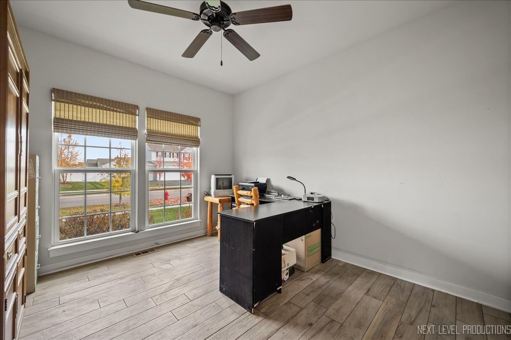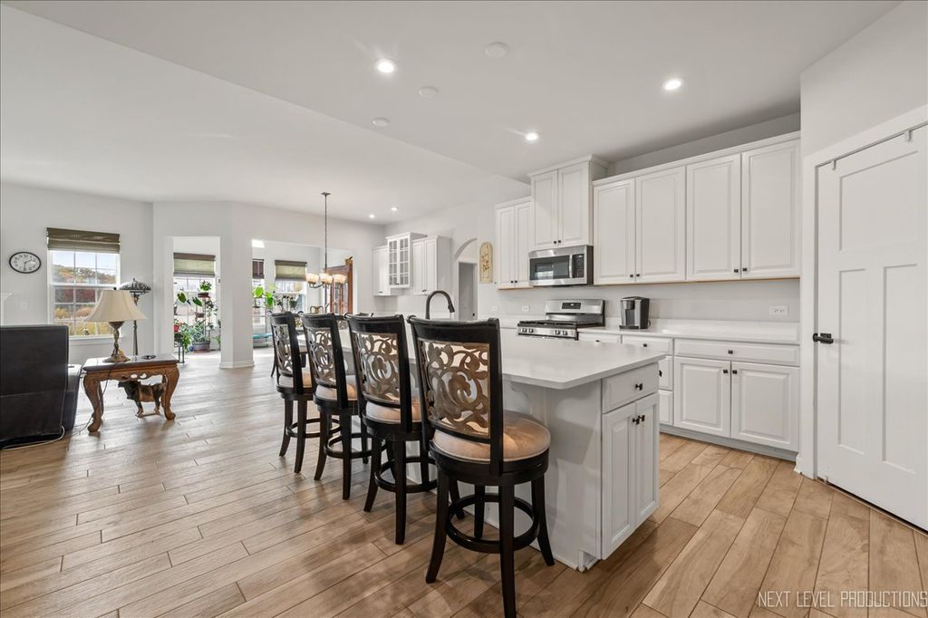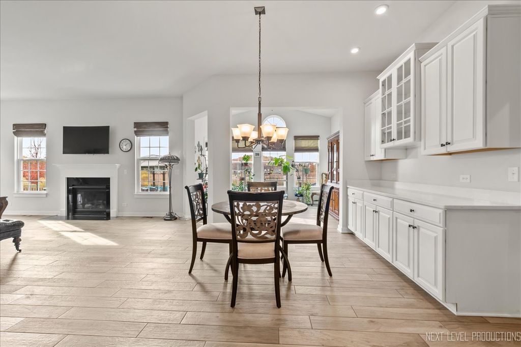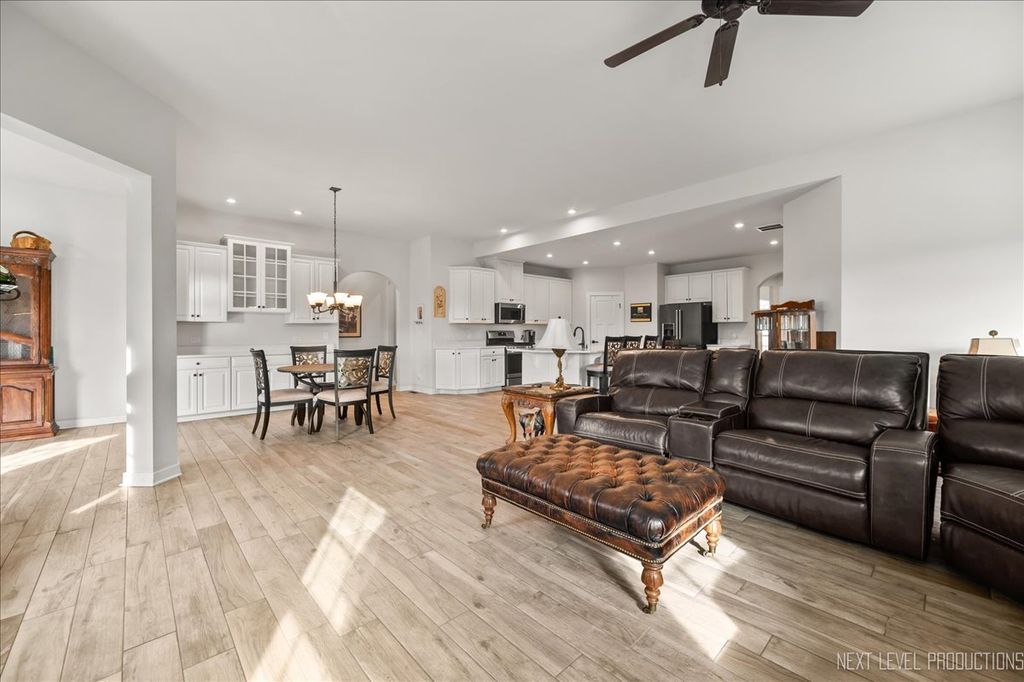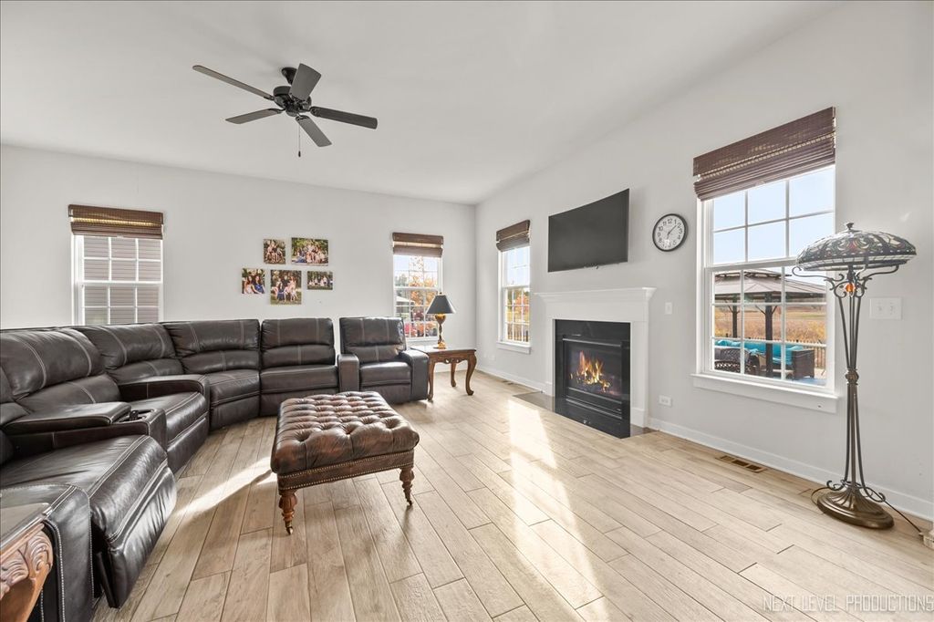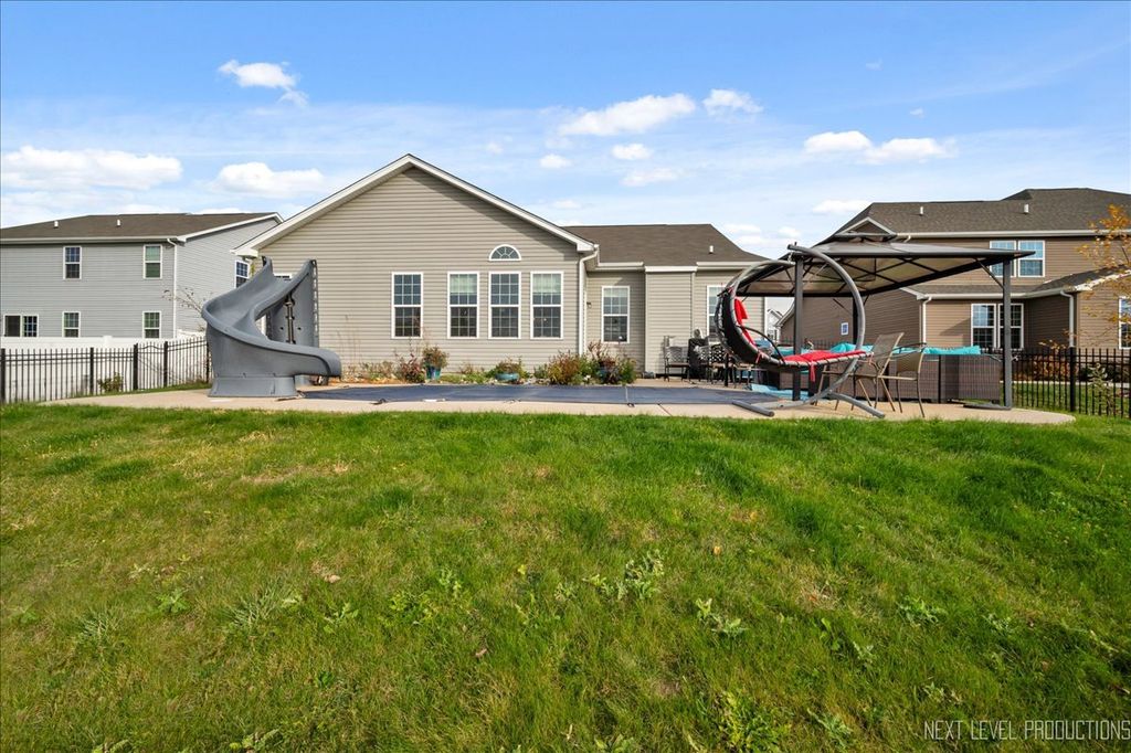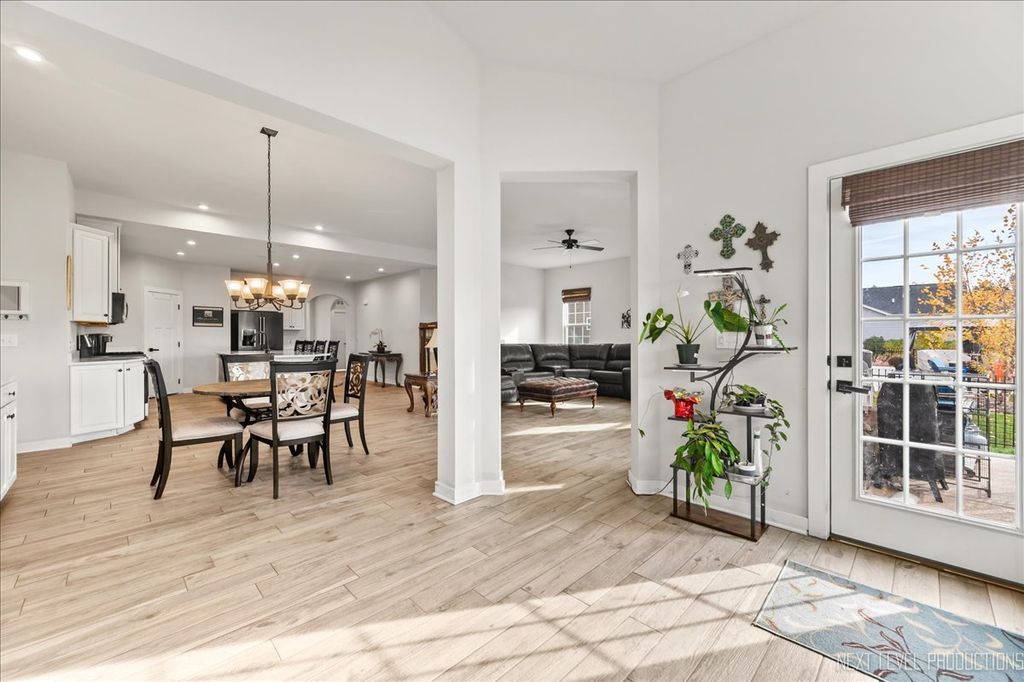 This beautifully updated ranch home is a place where everyday living feels elevated. It's where comfort, light, and thoughtful design come together in all the right ways. From the moment you walk in, the warmth of rich ceramic plank flooring, upgraded throughout, sets the tone for a space that's as durable as it is stylish. Just off the entryway, a bright and flexible front room welcomes you with endless possibilities-perfect as a home office, peaceful study, hobby room, or reading retreat. Step further into the heart of the home and you're greeted by a stunning open-concept living area that invites connection and ease. The kitchen is a chef's dream, with tall white cabinets that reach to the ceiling, finished with crown molding, elegant Quartz countertops, recessed lighting, and a large center island perfect for meal prep, casual dining, or gathering with friends. The upgraded stainless steel refrigerator adds a touch of luxury, while the expansive dining area comfortably fits even the largest table and includes additional cabinetry ideal as a special display area, a coffee bar, serving space, or hidden storage. The great room is open and welcoming, anchored by a beautiful gas fireplace framed by windows offering lots of natural light, and yet the perfect setting for cozy evenings, movie nights, or relaxing weekends. Just off this space, a sunny Florida room with large windows offers a serene spot to enjoy morning coffee or unwind at the end of the day, with peaceful views of the backyard and the open prairie. The primary suite is a private retreat, spacious enough for a king-size bed and personal seating area. It includes two walk-in closets and a luxurious en-suite bath featuring tall double vanities and a walk-in shower with elegant finishes. Two additional bedrooms offer comfort and flexibility, easily adapting as guest rooms, nurseries, or creative spaces. Downstairs, the full basement extends your living space with a large finished area perfect for a family room, game zone, or home theater, while two generously sized unfinished rooms provide endless storage or potential for future expansion. But the real showstopper lies just beyond the back door. Step into your own private oasis-an entertainer's dream with a heated in-ground pool, complete with a fun water slide for endless summer enjoyment. A charming gazebo offers shade and relaxation, and the fully fenced yard ensures privacy with no neighbors behind you-just open space and tranquility. Additional features include first-floor laundry, vaulted ceilings, an attached two-car garage with openers and transmitters, and access to scenic walking paths just beyond the yard. With so many thoughtful upgrades, move-in-ready condition, and the ease of ranch-style living, this home is a rare and special find. It's not just a home-it's where your best life begins.
