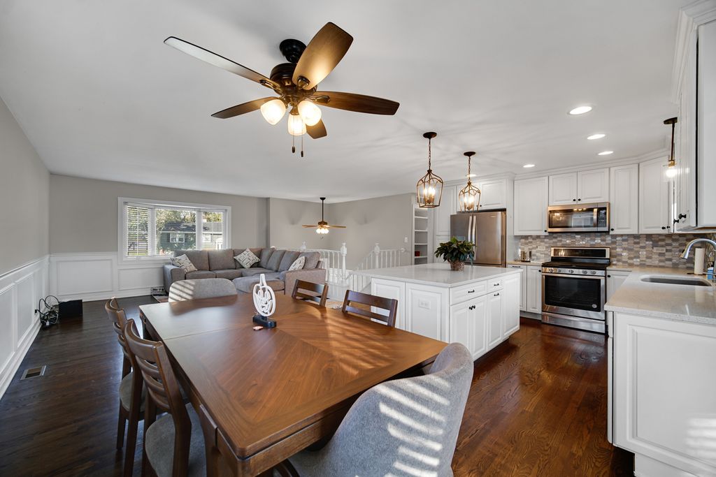 Welcome to this beautifully updated 4-bedroom, 2-full-bathroom home offering 1,952 sq ft of finished living space in the highly sought-after Butterfield West subdivision. This home is truly move-in ready, featuring a sun-drenched main level with a spacious open-concept layout, gleaming hardwood floors throughout the main level, fresh interior paint, and elegant wainscoting in the living room. The heart of the home is the stunningly remodeled kitchen, designed for entertaining with a large island, breakfast bar, and stainless-steel appliances, all flowing seamlessly into a separate dining room. The main level is completed by three spacious bedrooms, including the 14x12 Master Bedroom, a 13x10 second bedroom, and a 10x9 third bedroom. The living space extends outdoors from the bright sunroom to a private under-deck oasis, where a premium dry-deck system with a ceiling fan and mounted outdoor TV creates the perfect three-season lounge, keeping you dry rain or shine. Just steps away, enjoy the 18 ft. above-ground pool featuring a brand-new 2024 liner, all within a fully fenced yard that also includes a newer Tuff Shed for storage. The fully finished walk-out basement adds incredible living space, centered around a massive 21x13 family room with a cozy fireplace and a sleek new wet bar. This level also features the large 13x10 fourth bedroom and the second full bathroom, making it an ideal guest suite or rec area. Forget the stress of major expenses, as all the upgrades are done for you, including a new wet bar, polyaspartic garage floor, and cosmetic bath remodel in 2022; a new Lennox furnace, Lennox AC, and whole-house humidifier in 2019; and a full kitchen remodel in 2017. Plus, recent spray-foam attic insulation improves energy efficiency. This home's prime location is the perfect blend of comfort and convenience: walk to top-rated schools and enjoy being just minutes from the Morton Arboretum, Lisle and Glen Ellyn Metra stations, easy interstate access, and all the shopping and dining in downtown Glen Ellyn, Wheaton, Naperville, and Downers Grove. Don't let this one pass you by!