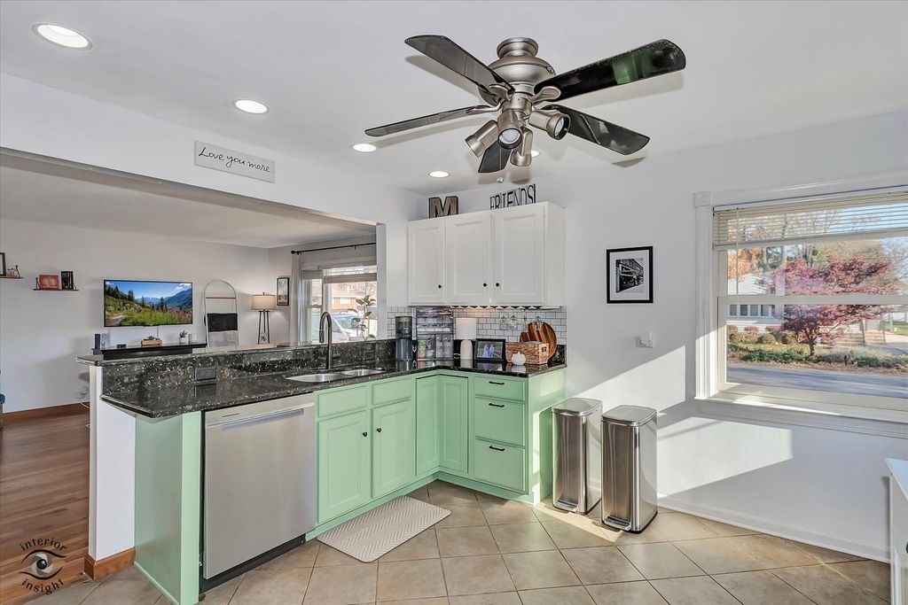 Beautifully Renovated Home Just Steps from Downtown Tinley Park! Welcome to this fully updated 2-bedroom, 1-bathroom gem perfectly located near downtown Tinley Park! This home offers a bright, open floor plan with modern finishes throughout. The eat-in kitchen features granite countertops, stainless steel appliances, a breakfast bar, and recessed lighting-perfect for everyday living or entertaining. The dining room with built-ins flows seamlessly into the living room, both featuring gorgeous hardwood floors. The remodeled full bath includes stylish updates, and the spacious bedrooms provide ample comfort. Upgrades since 2020 include: Radon mitigation system, New stainless steel stove, New roof above front entry, 1-car garage with added electric, floodlights, and opener, Newer outdoor and basement electric outlets, Newer Range, Dishwasher, Refrigerator, Hot Water Heater and Fence. New Patio in 2024. Enjoy the large backyard, unfinished basement with laundry area (full-size washer/dryer + utility sink), and unbeatable location near train, downtown, expressways, parks, and schools. Move-in ready and loaded with charm-don't miss this incredible opportunity!