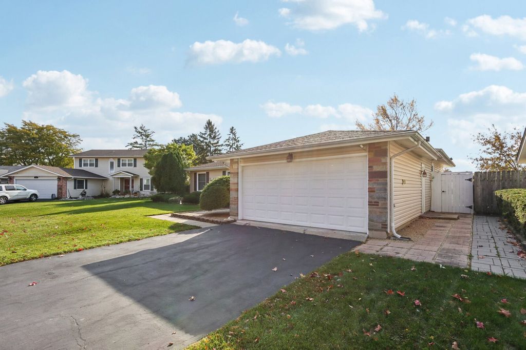 Welcome to this stunning 3-bedroom, 2-bath ranch-style home located in Elk Grove Village! As you enter, you'll be welcomed by a spacious living room showcasing brand-new waterproof vinyl flooring and fresh paint-features that extend throughout the entire home! The modern kitchen offers abundant cabinetry, new stainless steel appliances-including a double oven, built-in microwave, French door refrigerator, and a new 30-inch gas cooktop-and a convenient island with breakfast bar seating. Adjacent to the kitchen is a laundry room complete with a new washer and dryer. The home boasts three generous bedrooms, including a primary suite with its own private bath. Additional upgrades include a new shed and fence, 2022 AC, a new main electrical panel, added outdoor pavement and veranda, and an insulated attic. The spacious garage is also insulated, drywalled, and features a new side door. A brand-new front door completes the list of improvements. Don't miss out on this gem-schedule your showing today!