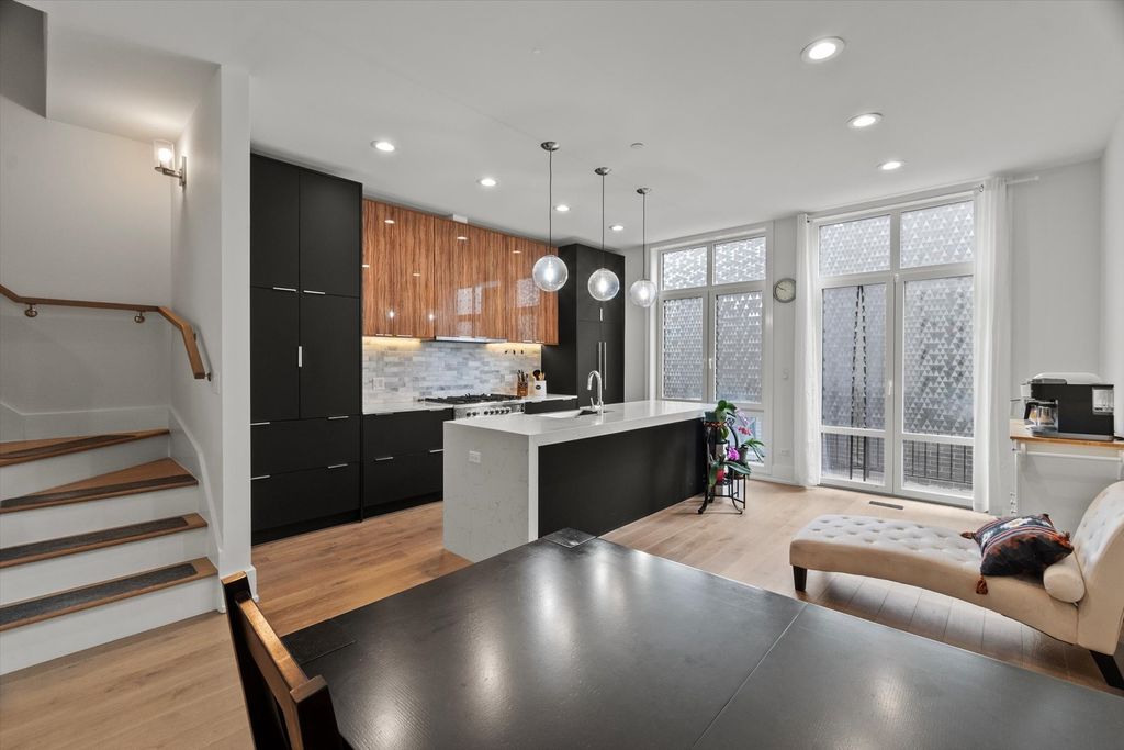 Experience luxury living in this newer construction development of townhomes in Chicago's highly desirable lakefront East Woodlawn neighborhood, offering direct access to Jackson Park and just steps from the University of Chicago. These thoughtfully designed multi-level homes feature elegant, sun-filled interiors with soaring 14-foot living room ceilings, floor-to-ceiling windows, and sleek glass-panel staircases. Each residence offers four spacious bedrooms and three and half baths. The main level boasts an open-concept kitchen and dining area, perfect for entertaining, with modern dual-toned flat-panel cabinetry, paneled Fisher & Paykel appliances, built in 36" range, quartz waterfall island with seating for four, built in horizontal microwave, garbage disposer, and a built in dish washer. Euro tilt-and-turn door leading to a balcony framed by a stunning wall of windows. The top floor is devoted to a luxurious primary suite, featuring dual walk-in closets, a spa-inspired bathroom with a freestanding soaking tub, double vanities, an oversized glass-enclosed shower, and a Bio Bidet USPA 6800 heated toilet seat-all with direct access to a private rooftop terrace with a new storm door. The second level includes two generously sized bedrooms full bath with double vanity, lower level offers a versatile space ideal as a family room or a fourth bedroom with its own ensuite bath. Smart upgrades elevate this home even further, dimmer switches in all bedrooms and the dining area, Switch Bot smart light controls for the entry and second-floor deck lights, and Switch Bot automated curtain controls in the second bedroom. Additional features include a Blink entrance camera with enhanced security coverage. Built for comfort and efficiency, these homes include dual Nest-controlled HVAC systems, tankless water heaters, pre-wired sound systems, full masonry construction (with solid masonry party walls), and a two-car heated attached masonry garage. The location is walking distance to the Obama Presidential Center (currently under construction), 10 min walk to the University of Chicago Hyde Park Campus, the planned commercial corridor at 63rd Street and the lakefront's beaches, harbor, and trails. Commuting is easy with access to downtown via train, bus, or scenic Lake Shore Drive. Enjoy proximity to Jewel-Osco, Whole Foods, Trader Joe's, coffee shops, dining, and entertainment in nearby Hyde Park. This is modern urban living at its finest.