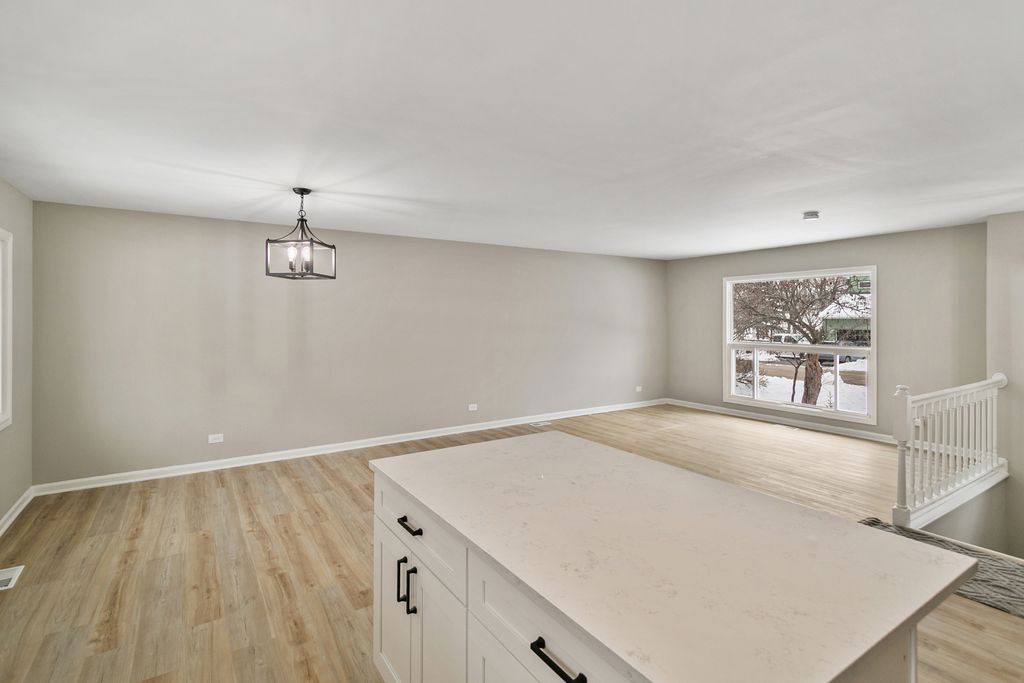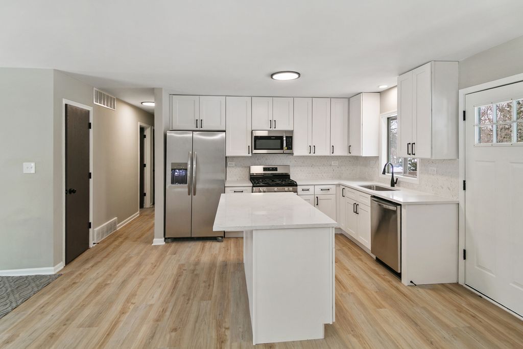 Welcome to this beautifully updated 3-bedroom, 2-bath home on a spacious, nearly half-acre lot in unincorporated Crystal Lake, proudly served by the top-rated Prairie Ridge School District. Completely refreshed with a stunning new kitchen featuring quartz countertops, white shaker cabinets, and stainless steel appliances, plus a newly expanded primary suite with full bath and separate shower. Enjoy all-new luxury vinyl plank flooring, interior paint, fixtures, lighting, and a new electrical panel, along with a new sump pit in the garage for added peace of mind. The walk-out lower level opens to a huge backyard and a spacious family room-perfect for relaxing or entertaining. Just steps from the Fox River and minutes from shopping, dining, and recreation, this move-in-ready gem won't last-view the 3D tour with floor plan and schedule your private showing today!