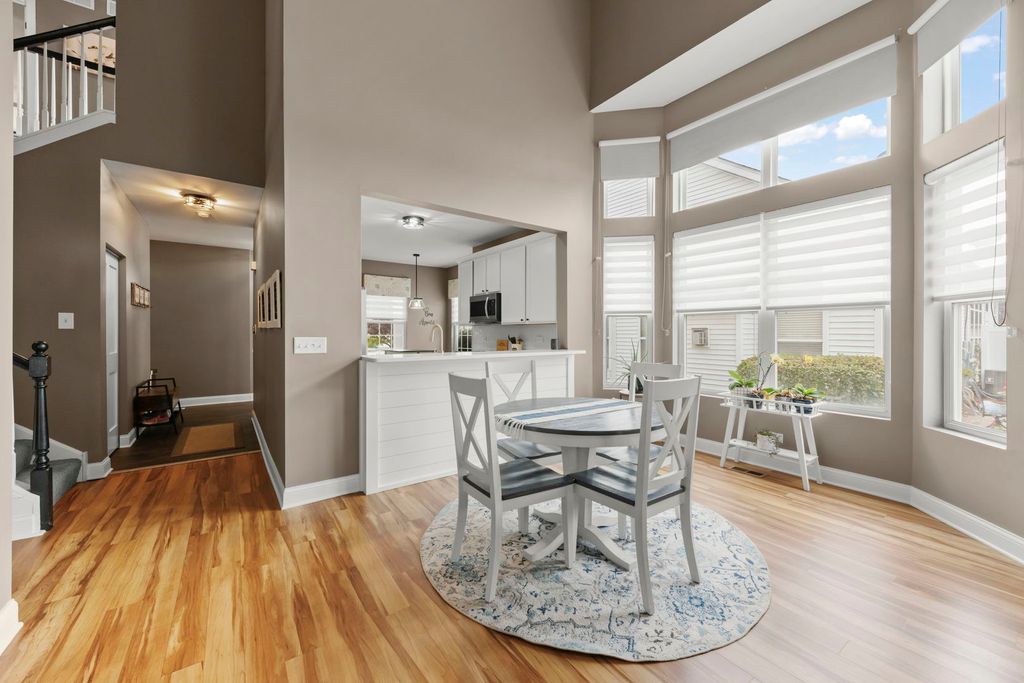 Welcome to this beautifully updated duplex! The main level features an updated eat-in kitchen with white cabinetry, quartz countertops, and newer stainless-steel appliances, refrigerator (2023), oven (2024), microwave (2024). The open layout flows seamlessly into the formal dining room and spacious living room, which is highlighted by a gorgeous fireplace, luxury vinyl plank flooring, updated white doors and trim, and abundant floor-to-ceiling windows that fill the home with natural light. Tucked privately on the main level, the primary suite offers a relaxing retreat with a large ensuite bathroom featuring new tile flooring (2022), separate soaking tub, shower, new vanity and light fixtures (2022) and two closets. Additional first-floor highlights include NEW Furnace & A/C (2025). Laundry room has a newer washer (2022) and dryer (2022) with a convenient half bath. Upstairs, you'll find three additional bedrooms with walk in closets and a shared full bathroom with new vanity and light fixtures (2022). Maintenance free living with a pool and clubhouse included! Whole house has been painted between (2021-2023), new carpet installed (2024), and new blinds (2021). Additional features include a freshly seal coated driveway (2025), two-car garage with new motor (2025). Minooka schools! Welcome Home!