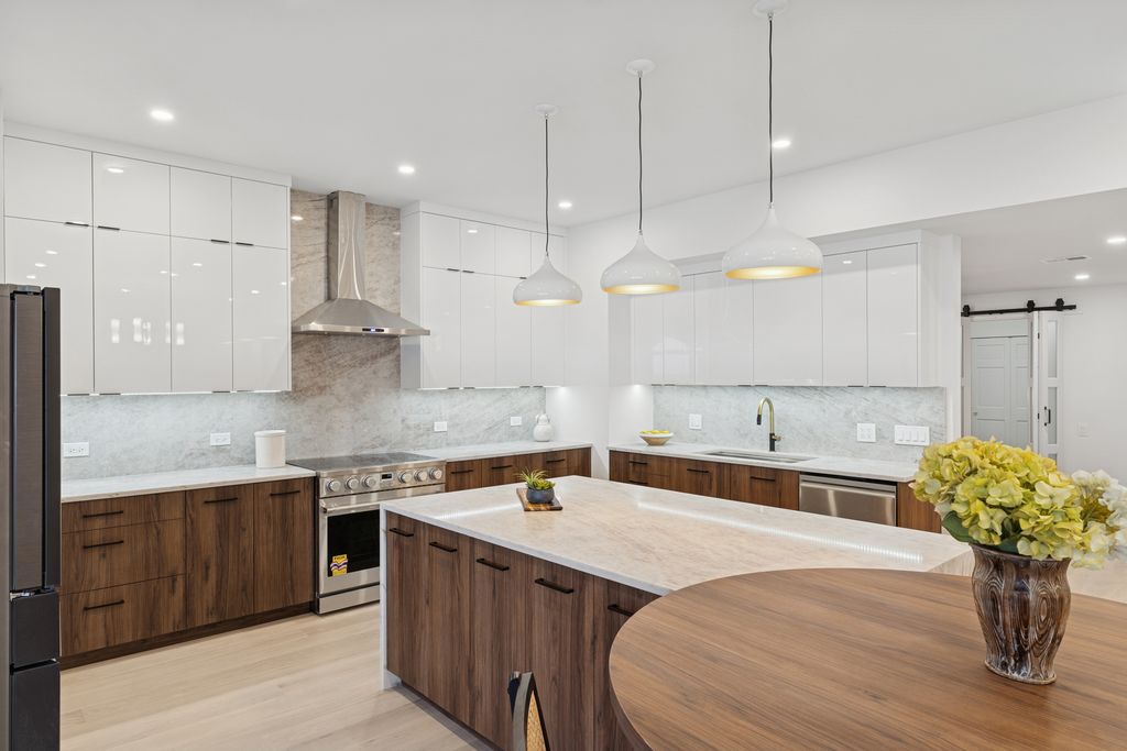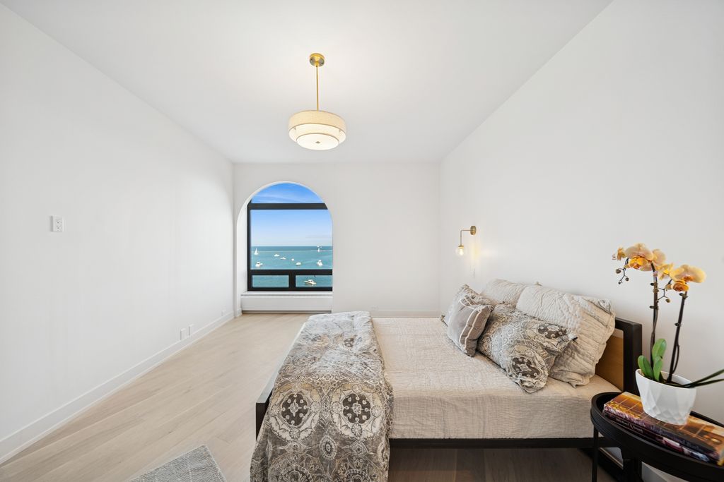 Welcome to an exquisitely reimagined residence at 680 North Lake Shore Drive. This stunning high-rise condo invites you into a modern space designed for both comfortable family living and large-scale entertaining. The newly crafted open concept floor plan offers 3 spacious bedrooms and 2.5 luxurious bathrooms within its expansive 2,900 square feet. This light-filled home boasts soaring over 9-foot ceilings (raised during rehab) and an expansive east-facing living room, complemented by a built-in bar, dedicated dining room, and a large open concept kitchen. The well-designed floor plan flows seamlessly, featuring brand new wide plank hardwood flooring throughout and extraordinary storage solutions. Be captivated by unobstructed views of Navy Pier through arched windows, highlighted with sophisticated LED lighting and electric/remote solar blinds for added convenience. The chef's kitchen is a masterpiece, equipped with brand-new stainless-steel appliances, including a 36" Thor electric stove with an external venting hood and a 36" Samsung 4-Door Refrigerator. Exquisite Taj Quartz countertops, a full backsplash, and an 8-foot extra wide waterfall island with an integrated round table ensure a perfect setting for an eat-in kitchen with a view. A separate walk-in pantry with custom shelving and a separate bar area with a wine refrigerator are perfect for entertaining guests. The primary suite offers designer details with fluted paneled wood walls and a walk-in closet featuring custom built-out storage with contemporary barn doors. The ensuite spa-like bathroom includes a double vanity, a freestanding soaking tub, and a separate shower, all accented with LED lighting. Convenience is key with a brand-new side-by-side washer and dryer in a generous laundry room. Building amenities enhance living with 24-hour doorman service, a fitness center, indoor pool, bicycle storage, dry cleaners, and indoor parking. Located in one of Chicago's most iconic historic buildings, you are within walking distance to the Museum of Contemporary Art, dining, shopping, Northwestern Medical, and everything a world-class city like Chicago has to offer. Additional storage space. One prime parking spot is available for an additional $60k, conveniently located on the same floor as the residence for easy access. Experience luxury living with lakefront views, central AC, and modern elegance in every detail.