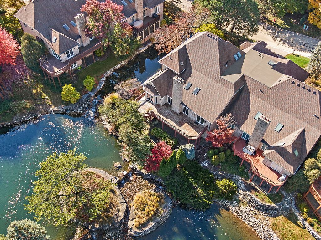 Custom luxury McNaught-built 4-bedroom townhome in the exclusive Tartan Lakes community, perfectly situated with peaceful water views. Enter through a dramatic foyer with a curved staircase leading to an elegant formal dining room with crown molding and a spacious family room featuring vaulted ceilings, skylights, and a gas fireplace with granite surround. The chef's kitchen impresses with a large island with breakfast bar, beverage fridge and additional sink, granite counters and backsplash, high-end stainless appliances including built-in oven, separate range with stainless hood, Sub-Zero refrigerator, a butler's pantry with sink, and a vaulted breakfast nook with skylights and deck access. The main level also offers a powder room and mudroom with sink and custom locker system. The luxurious first-floor primary suite includes a tray ceiling, private deck access, two walk-in closets with organizers and a safe, and a spa-inspired bath with dual vanities, Whirlpool tub, separate shower, and a private toilet room with bidet. Upstairs features two additional bedrooms each with walk-in closets and en-suite steam showers, along with a unique playroom over the garage, and an impressive library with custom built-ins and lighting. The fully finished walkout lower level is an entertainer's dream, showcasing a radiant-heated terrazzo floor, three sliding glass doors to the outdoors, and a custom wet bar/second kitchen complete with Sub-Zero wine fridge and refrigerator, stove, dishwasher, microwave, and under-cabinet lighting. A fourth bedroom and full bath with multi-spray shower offer an ideal in-law or guest suite, while the large utility/laundry room provides exceptional storage and workspace. Relax on the expansive deck or on the covered patio overlooking the tranquil creek and water. Additional highlights include a two-car garage with epoxy flooring, in-floor radiant heat, EV charger, and built-in locker system, in-ground lawn sprinkler system, 2 tankless water heaters, and central vacuum. A rare opportunity to own a beautifully crafted, impeccably maintained home in one of Westmont's most sought-after communities-luxury living at its finest.