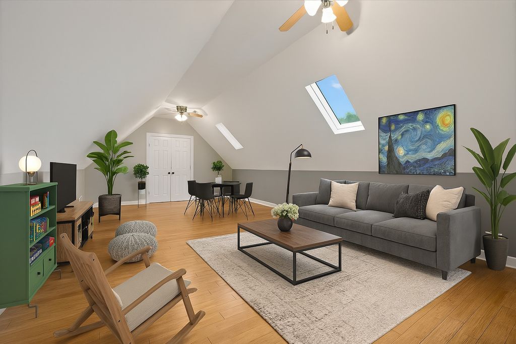 Nestled on a quiet, tree-lined street, this massive 3-bedroom, 2-bath duplex up perfectly blends vintage charm with modern updates. Vaulted ceilings, skylights, and exposed brick create an airy, inviting atmosphere throughout. The main level features soaring ceiling heights, a spacious living room with bay windows, a separate dining area, two bedrooms, a mudroom/office, and a beautifully updated kitchen with a breakfast bar and stainless-steel appliances. Upstairs, enjoy a huge third bedroom with an enormous walk-in closet-or use it as a family room-plus a versatile flex space ideal for a home office. Additional conveniences include in-unit laundry, central heat and air (only two years old), a large storage closet, common front deck, and 2 car, tandem exterior parking. Located just minutes from public transit, breweries, restaurants, and parks, this pet-friendly home sits in Avondale-recently ranked one of the coolest neighborhoods in the world for 2025 by Time Out!