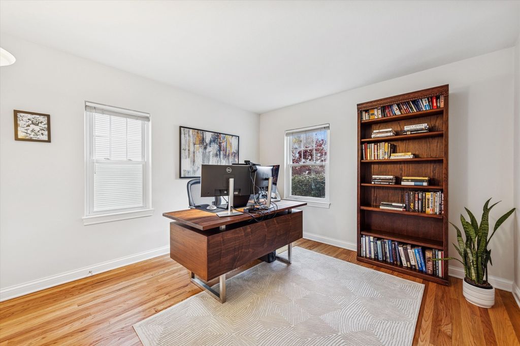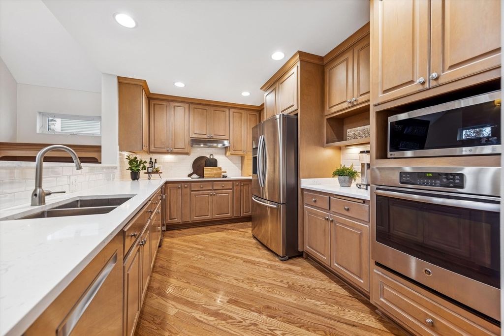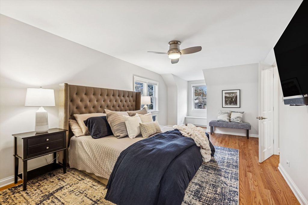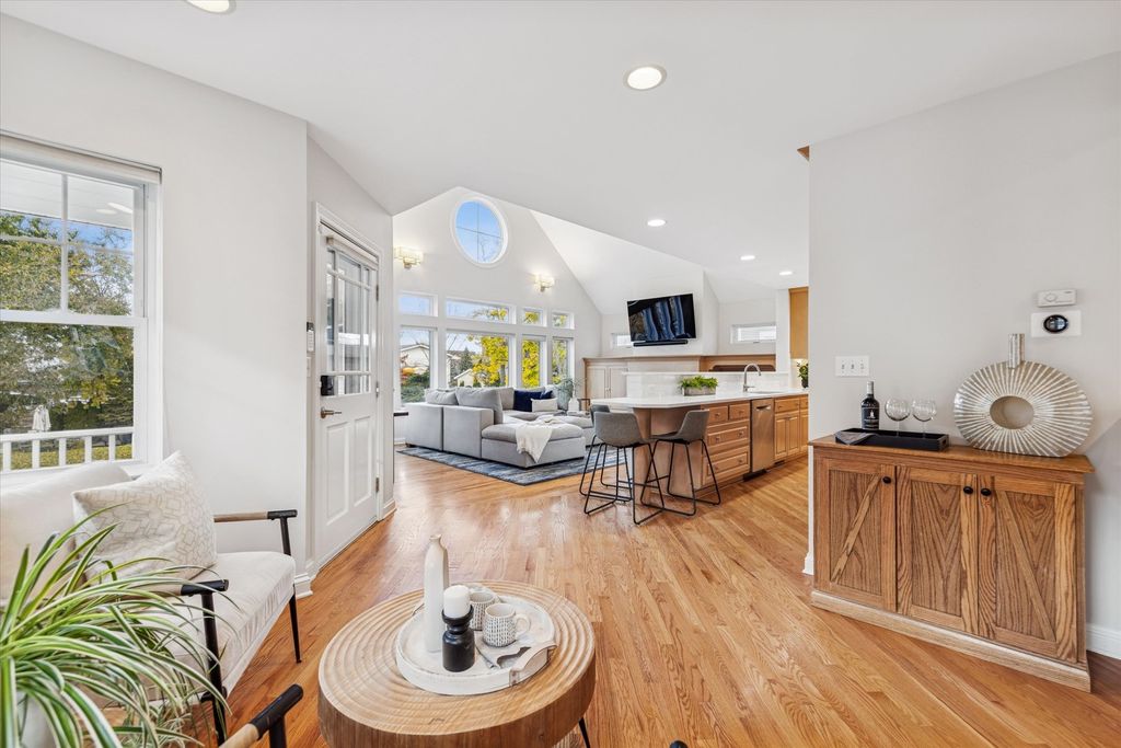 This delightful expanded Cape Cod home is set in one of the most sought-after, vibrant neighborhoods. Just a short walk to shops, restaurants, train station, and parks, this property seamlessly merges charm with modern updates. Inside you will find neutral decor, gleaming hardwood floors, and architectural details. At the heart of the home is the oversized vaulted great room featuring panoramic windows overlooking the expansive yard and custom gas fireplace with built-ins. The great room opens up to the kitchen which includes stainless steel appliances, quartz countertops and a convenient laundry closet plus the dining room. The first floor also includes a welcoming living room with its own fireplace, two versatile spaces that can serve as bedrooms or office, plus a full bath. On the second floor, the primary bedroom offers an extra-large walk-in closet, accompanied by a hall bathroom and an additional bedroom. The lower level features a recreation room, ample storage, and a heated three-car attached garage. The expansive 53 x 222-foot yard is perfect for entertaining, featuring a flagstone patio and outdoor fireplace. Updates include: 2016 new roof and garage door, 2023 new lenox ac & furnance, 2024 hardwood floors, new paint and new basement carpet, 2024 additional new electrical box in garage for EV, 2024 additional exterior lighting installed plus 2024 laundry moved to first floor.This home truly embodies the ideal mix of historic charm and modern convenience that Travel + Leisure recently highlighted about Glen Ellyn when naming it as one of the "9 Best Places to Live in the U.S. for Families."