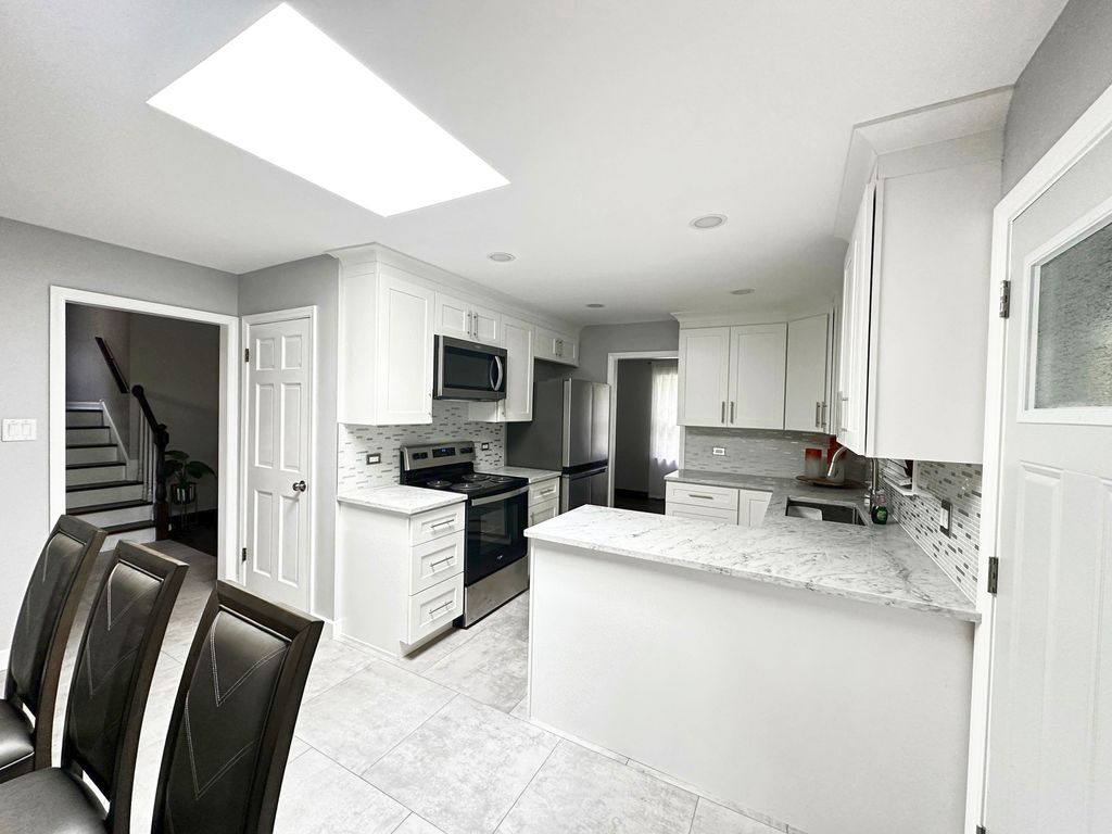 Beautifully updated 4-level split in Oak Meadows offering nearly 3,000 sq ft of finished living space on a .39-acre lot backing to the Illinois Prairie Path! Major 2024-25 upgrades (over $70K) include a full kitchen remodel with quartz countertops, J&K white shaker cabinetry, and stainless-steel appliances; new flooring throughout; fresh paint; new doors and trim; radon mitigation system; Aquasana whole-house water filtration with UV; and attic insulation. Additional improvements include a 2019 roof, 2020 fence, refinished hardwood floors (2020), furnace and A/C (2009), water heater (2016), and a whole-house generator (2010, serviced 2023 with new battery). The home features a bright living and dining area, a finished sub-basement with rec room and storage, plus a screened porch with grill exhaust for year-round entertaining. Upstairs, the bedrooms offer hardwood floors, new trim, and an updated primary suite with a custom walk-in closet. Outside, enjoy a fenced yard with stamped-concrete patios, fire pit, and shed with electricity. Direct backyard access to the Illinois Prairie Path and a location across from St. Andrews Golf Club make this move-in-ready home a rare blend of modern updates, thoughtful maintenance, and an unbeatable setting.