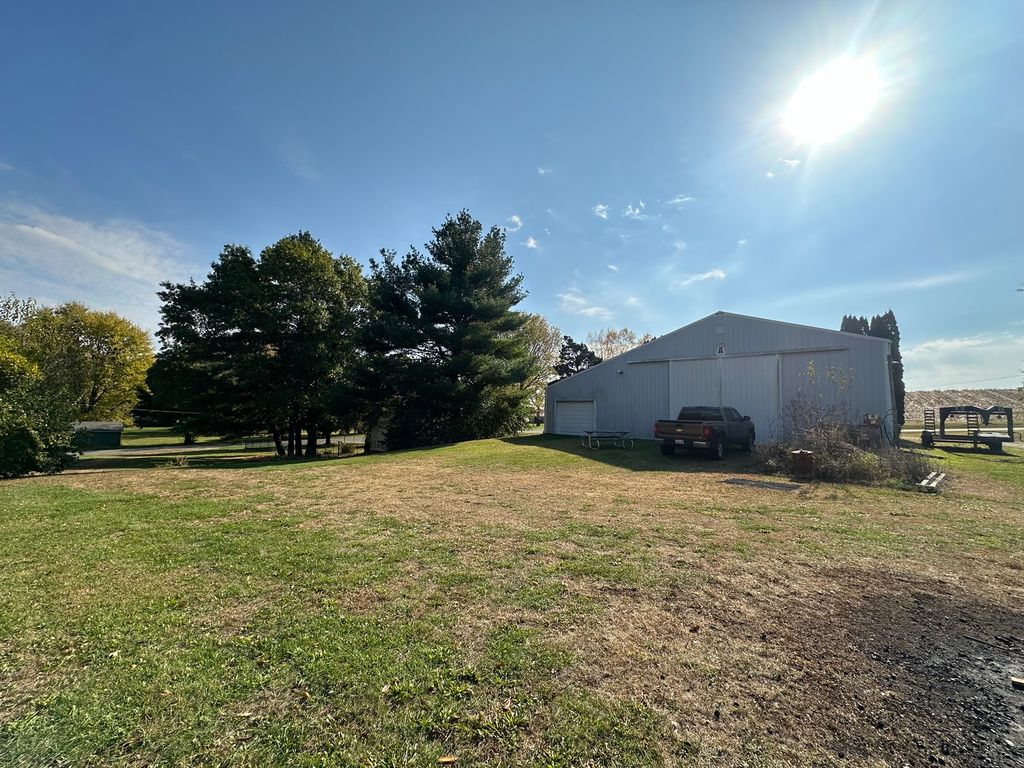 Spacious Edge-of-Town Property with Shop and Extra Acreage Enjoy small-town living with room to spread out on this large edge-of-town lot! This charming home features 3 bedrooms - two upstairs and one conveniently located on the main floor alongside a full bath with a walk-in bathtub and separate shower. The open-concept kitchen with an island flows into a cozy family room with a fireplace and beautiful wood flooring. The main floor also offers a large living and dining room combo and a convenient laundry area. Step outside to a generous fenced yard, plus an additional 1.5 acres behind the property that includes a large, heated machine shed with an office, restroom, and kitchen sink - perfect for hobbies, storage, or a home business. This property combines comfort, space, and versatility - a rare find on the edge of town!