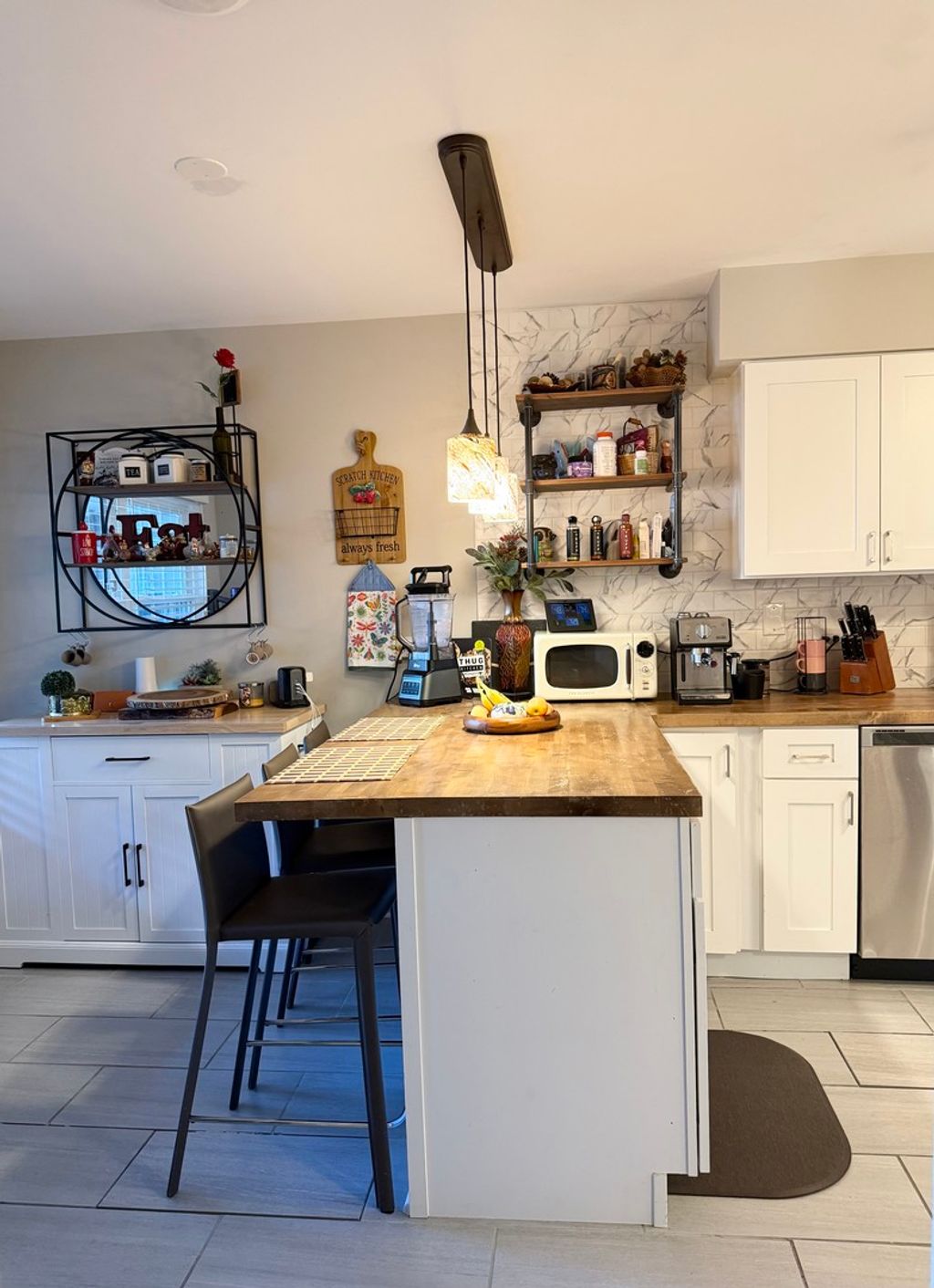 Don't miss this incredible opportunity to own a stunning 3-bedroom, 2.5-bath townhome in the highly desirable Elk Grove Estates! Step inside and fall in love with the open, spacious layout and generous room sizes throughout. The kitchen-remodeled in 2023-shines with new stainless steel appliances, butcher block countertops, a stylish tile backsplash, modern sink, and a convenient breakfast bar. The adjoining dining area overlooks the back patio, while elegant French doors open to a bright and inviting living room featuring hardwood floors and recessed lighting-perfect for relaxing or entertaining. Enjoy two private patio spaces, ideal for gatherings or quiet evenings outdoors. Upstairs, each bedroom offers beautiful bay windows-perfect for your favorite plants-and ample closet space for all your storage needs. The primary suite is a true retreat, large enough for a king-size bed and featuring a luxurious whirlpool en suite bath. Downstairs you'll find a finished basement great for entertaining and a separate laundry room with newer Whirlpool washer & dryer. This unbeatable location offers something for everyone-take a leisurely stroll to Lake Cosman, enjoy a walk to the newly renovated Marshall Park, explore the trails of Busse Woods, or take a short drive to the shops, restaurants, and amenities of Downtown Elk Grove Village.