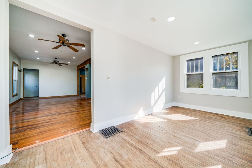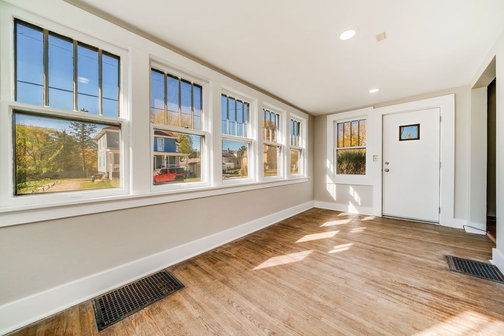 Move-in ready 1.5-story home with a welcoming four-season porch that opens to a bright living room. The updated kitchen features two-tone cabinetry, tile backsplash, stainless steel appliances, and newer finishes throughout. Convenient first-floor laundry and full bathroom add ease of living. Upstairs you'll find three bedrooms and a half bath. Enjoy a fenced backyard and a two-car detached garage. Recent updates include a new roof, newer flooring in much of the home, a fully remodeled kitchen, and updated electric with complete rewiring. Furnace, air conditioning, and water heater all replaced in 2010. This home blends comfort, style, and modern updates - ready for you to move right in and enjoy.