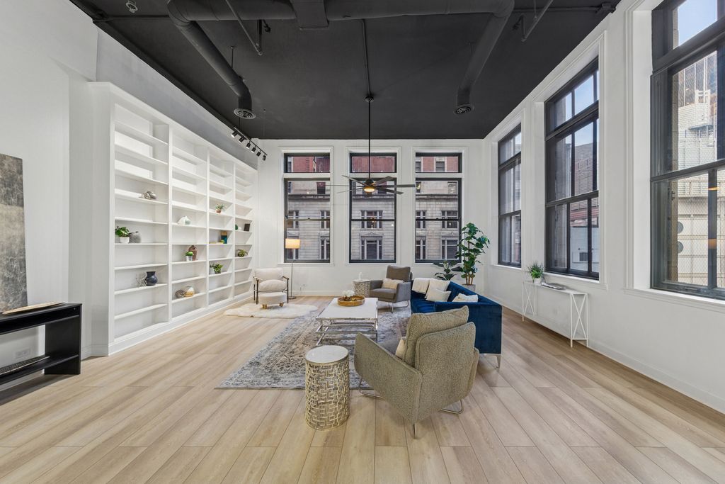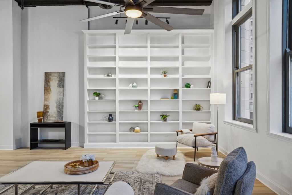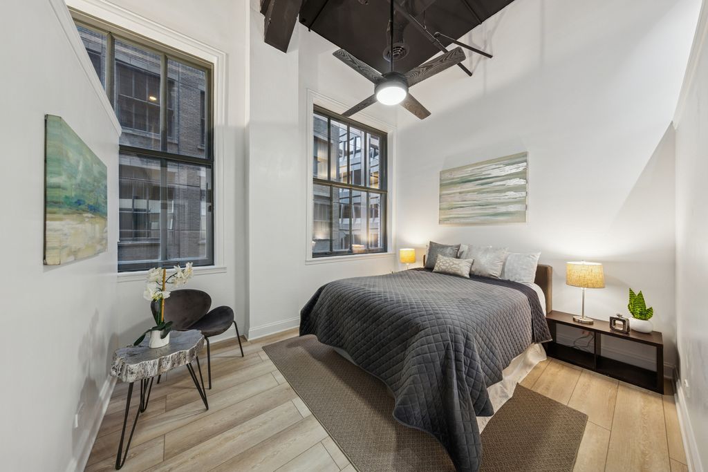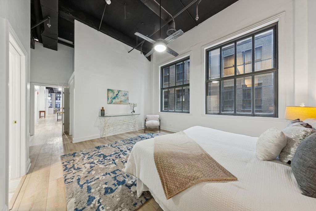 Location. Luxury. Privacy. Convenience: don't miss this rare opportunity to own an expansive, modern, turn-key residence offering a private in-unit elevator ~ a level of exclusivity and scale almost impossible to find in the Loop. Perfectly positioned on iconic State Street, this home delivers the best of city living with unmatched accessibility. Occupying the entire 4th floor, this 2,300 sq. ft. lofted residence features 4 bedrooms, 2 full baths, and soaring 14-foot ceilings throughout a dramatic open-concept layout. Every inch has been meticulously reimagined with premium finishes and a sophisticated modern design that beautifully complements the building's historic architecture. The sun-drenched main living space makes a bold impression anchored by a full wall of custom shelving and a stunning line of oversized windows that flood the interior with natural light. Dramatic corner exposures frame iconic views of the Palmer House and the vibrant Loop streetscape below. The chef's kitchen is draped in quartz with a striking waterfall island that offers abundant storage and seating. GE Profile appliances, including a beverage fridge, complete the space ideal for both culinary creations and entertaining. The primary suite is a private, spa-like retreat featuring a custom walk-in closet with a center island, plus an additional closet for even more storage. The ensuite bath exudes luxury with a double vanity, walk-in shower, and a freestanding soaking tub for ultimate relaxation. Three additional bedrooms, each with generous closets, offer flexible use for guests, office, or creative studio. Additional highlights include new wide-plank luxury flooring throughout, a premium full-size Whirlpool washer and dryer, and an oversized private storage space on the lower level. Enjoy effortless city living with deeded valet garage parking at 8 W. Monroe and unbeatable access to CTA buses, the Red Line, and all Loop "L" stops just outside your door.