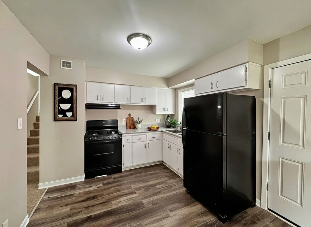 Well-maintained all brick home featuring 3 bedrooms, 1.5 bathrooms, and a detached 2-car garage. The main level offers a bright living and dining area, one bedroom, and a full bathroom. The kitchen includes white cabinetry, black appliances, and dark wood-style flooring. Upstairs you'll find two additional bedrooms, while the lower level adds a half bath and extra space for storage or flex use. Outside, enjoy a fenced backyard with a mature tree, concrete walkway, and detached garage.