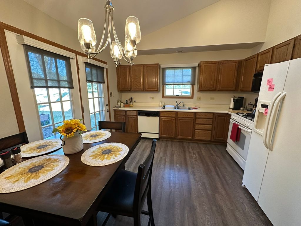 SOLD before Processing! Hard to find ranch end-unit townhome has been meticulously maintained. Truly one level living. Formal living room with vaulted ceiling. Spacious dining room perfect for entertaining with French doors. Sunny eat-in kitchen with skylight, walk-out doors to patio, and window over sink. Tons of closet space and huge panty. Large master suite, complete with a walk-in closet AND an extra large double door closet, vaulted ceiling, huge en-suite bathroom with a soaker tub, separate shower, double sink vanity. Main floor laundry room with large storage closet and utility sink. New washer & dryer 2022; New Roof; Facia; Soffits; Guttersl Skylight 2024. New carpet & wood laminate floors throughout (2022; Kitchen light fixtures (2022); Painted (2022) | Water heater (2018) and Furnace (2014) | Enormous dry basement | Large 2 car attached garage. Owners hate to sell. This is definitely the one you've been waiting for!