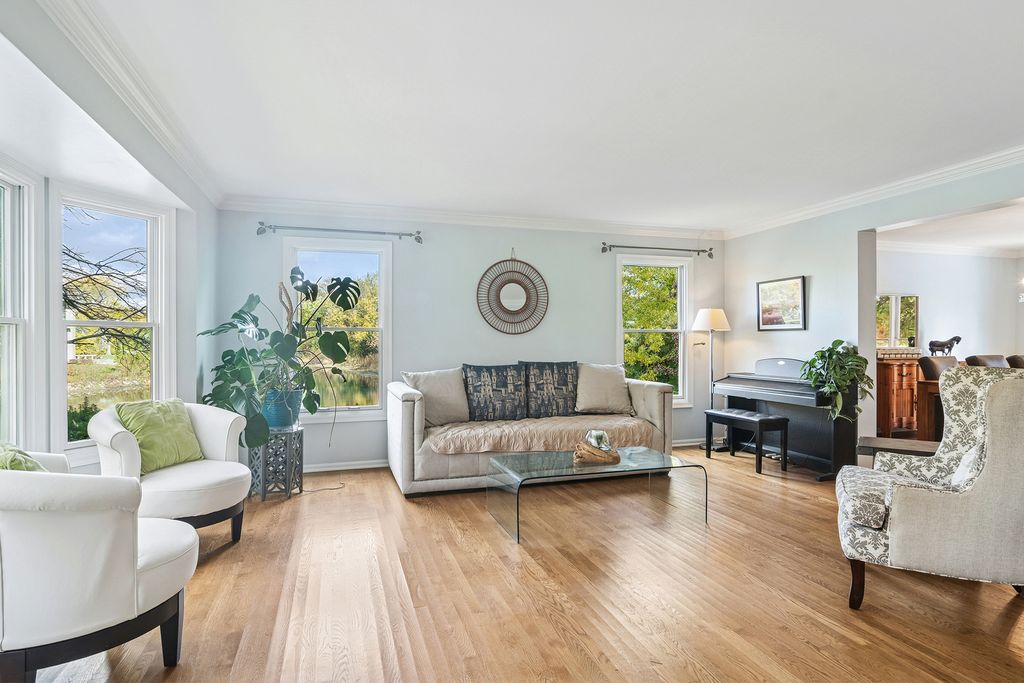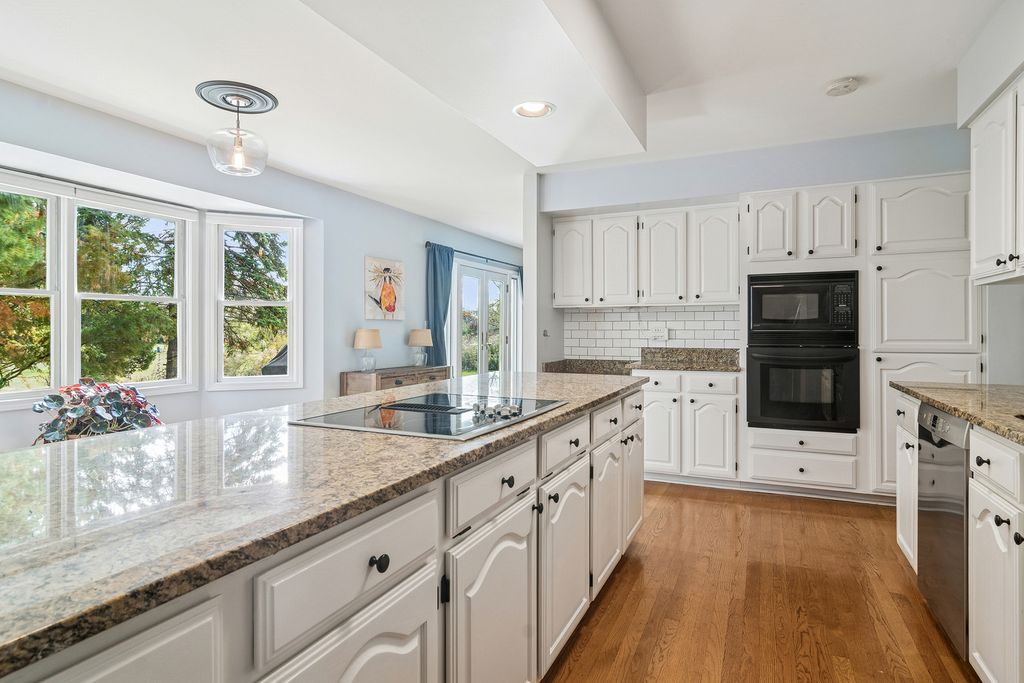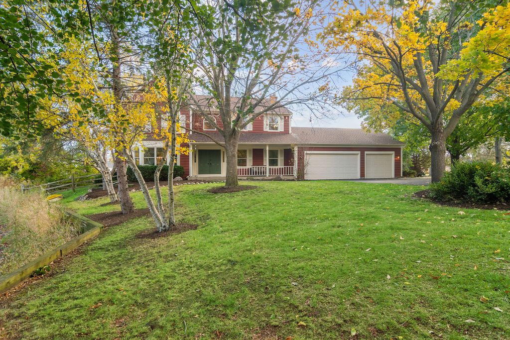 Set on a picturesque one-acre lot with serene water and conservation views, this move-in-ready home offers the perfect blend of comfort and style. Enjoy 4 bedrooms plus a first-floor office, 2.1 baths, and a 3-car garage, all within the sought-after Stevenson High School district. A welcoming covered porch opens to a bright, open interior featuring hardwood floors, fresh paint, and cozy carpet. The updated kitchen boasts granite countertops, a breakfast bar, and stainless steel appliances, flowing seamlessly into the family room with a cozy fireplace and deck access overlooking tranquil scenery. The spacious master suite includes a luxury spa bath, while a sun-filled living and dining room offer great space for entertaining. A full basement provides plenty of storage or expansion potential. Enjoy peaceful mornings watching wildlife from your backyard-this is Long Grove living at its best. No Fences in Long Grove.