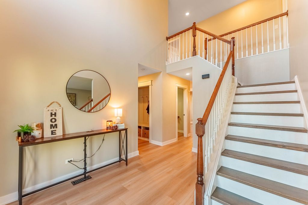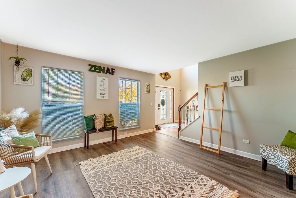 Experience refined suburban living in this beautifully updated four-bedroom, two-and-a-half-bath residence nestled within the sought-after Westmere Lakes community of Plainfield. Perfectly positioned on a private cul-de-sac, this smart home blends modern sophistication with timeless comfort-offering over 2,400 square feet of curated living space. Step into a grand two-story foyer that sets the tone for the home's elegance, leading into a bright and airy floor plan designed for both relaxation and entertaining. The formal living and dining rooms feature crown molding and an effortless flow into the heart of the home-a stunning chef's kitchen with white shaker cabinetry, granite countertops, sleek stainless steel appliances, and a casual eat-in area. Adjacent, the family room exudes warmth with its floor-to-ceiling stone fireplace-a true statement piece. This high-tech residence is enhanced with Google Home integration, built-in Bluetooth speakers, and smart lighting throughout, offering seamless modern convenience. Upstairs, retreat to a luxurious primary suite boasting vaulted ceilings, a generous walk-in closet, and a spa-inspired bath featuring marble countertops, a tiled shower, and a deep soaking tub. The newly renovated secondary bath impresses with a double vanity and custom tilework.